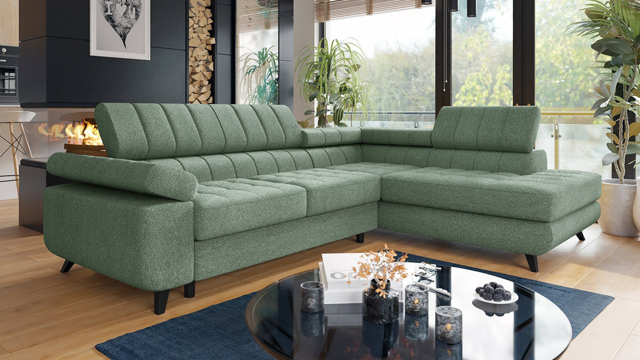 Rozkládací sedačka s úložným prostorem DAUPHIN - khaki, pravý roh