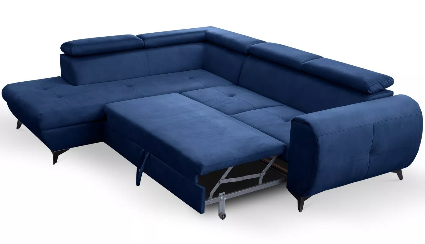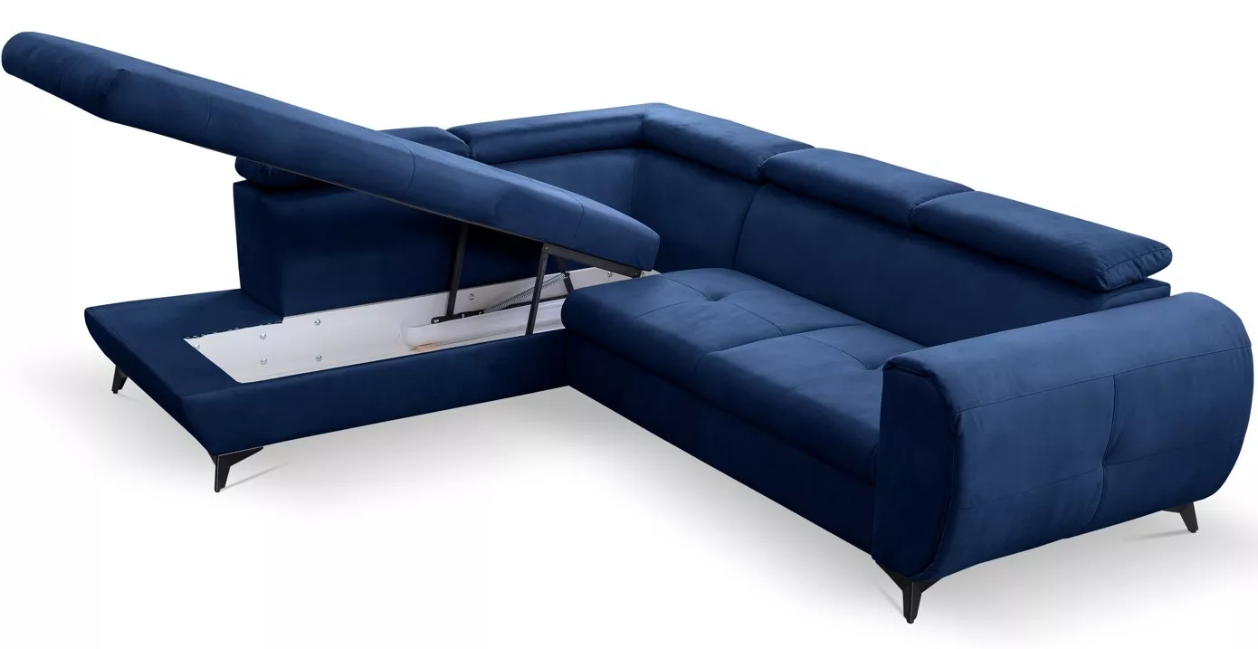 Rozkládací sedačka s úložným prostorem DAUPHIN - modrá, levý roh