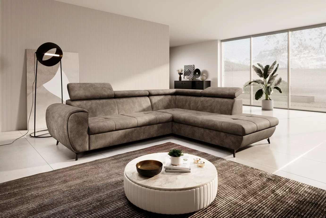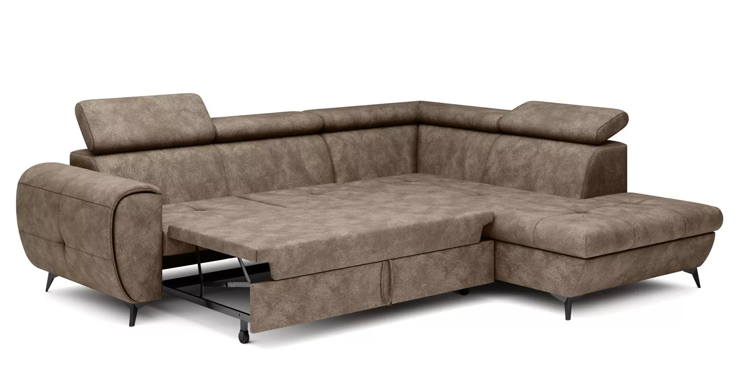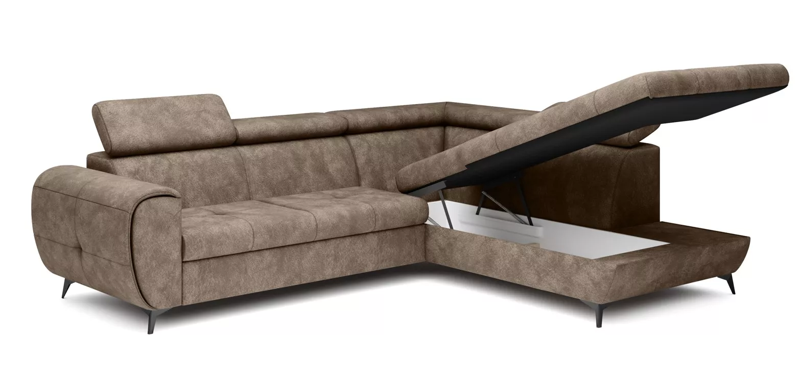 Rozkládací sedačka s úložným prostorem DAUPHIN - hnědá, pravý roh