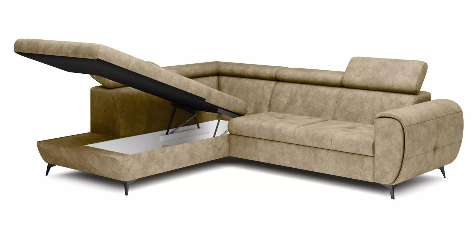 Rozkládací sedačka s úložným prostorem DAUPHIN - béžová, levý roh