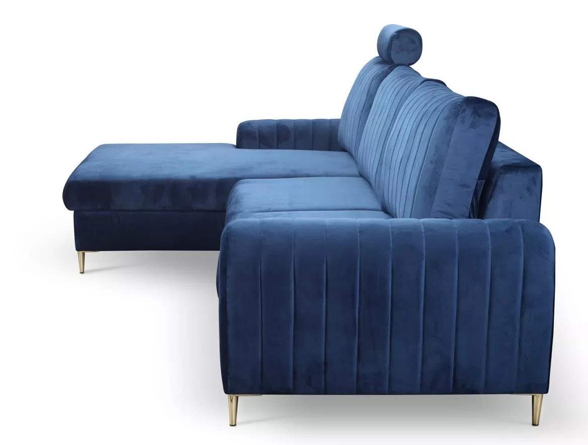 Pořiďte si rohovou sedačku, která okouzlí na první pohled! ESTENVAN s lesklými zlatými nohami a dekorativním prošíváním vnáší do interiéru šmrnc a eleganci. Nechybí ani praktický úložný prostor a možnost rozložení na lůžko 140x212 cm. Perfektní volba pro ty, kdo milují styl i funkčnost.