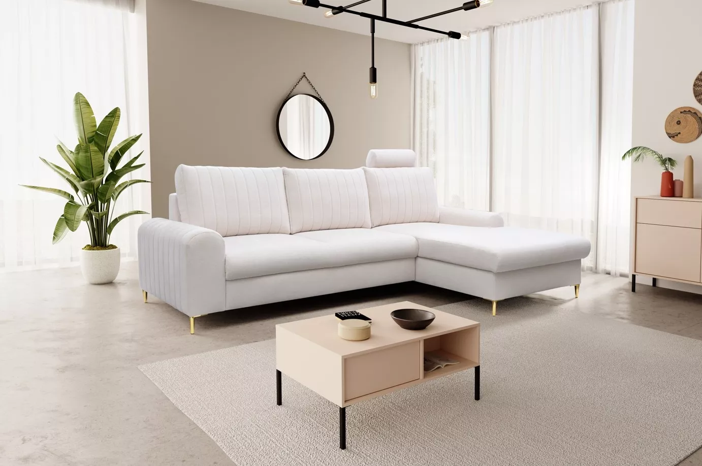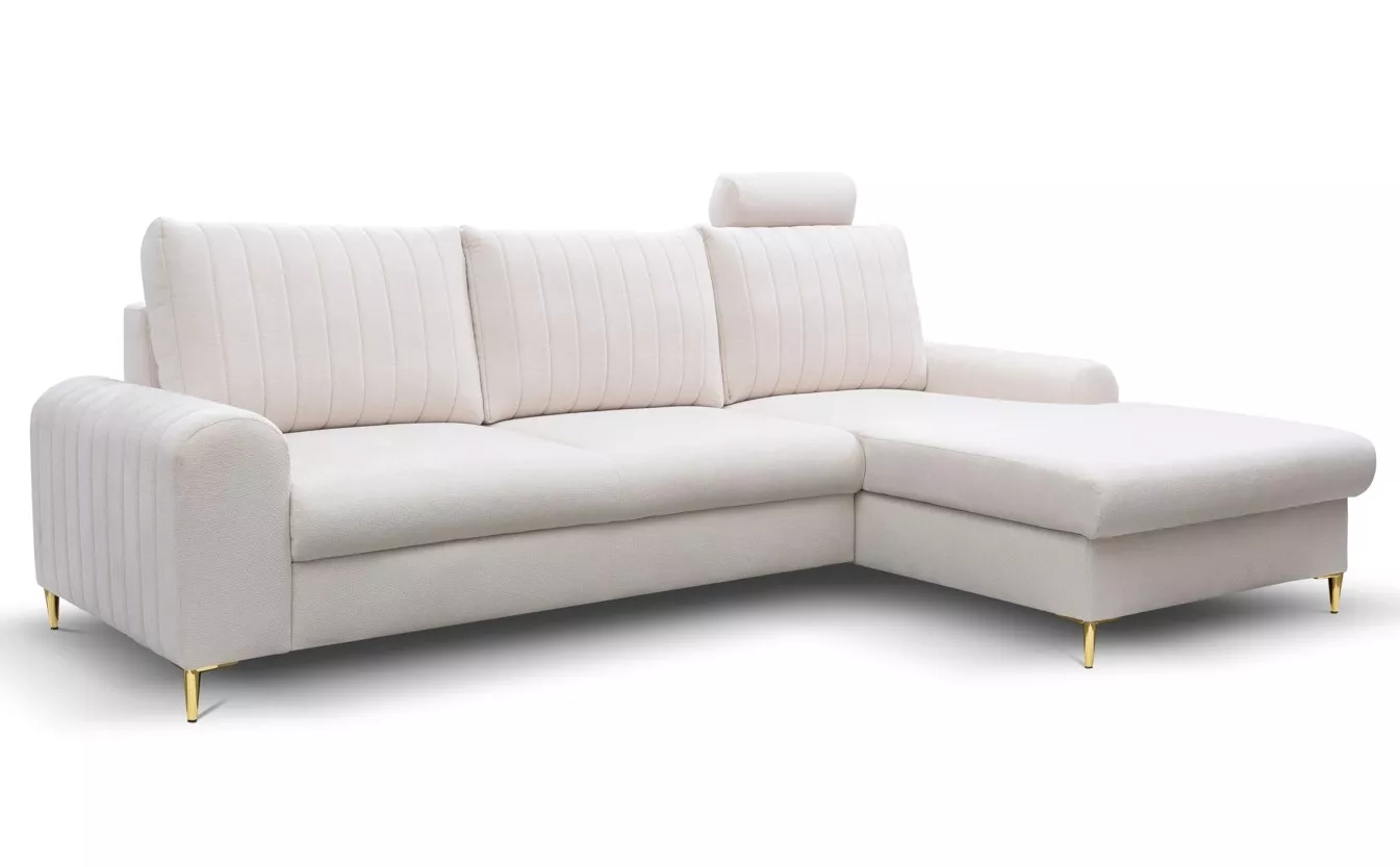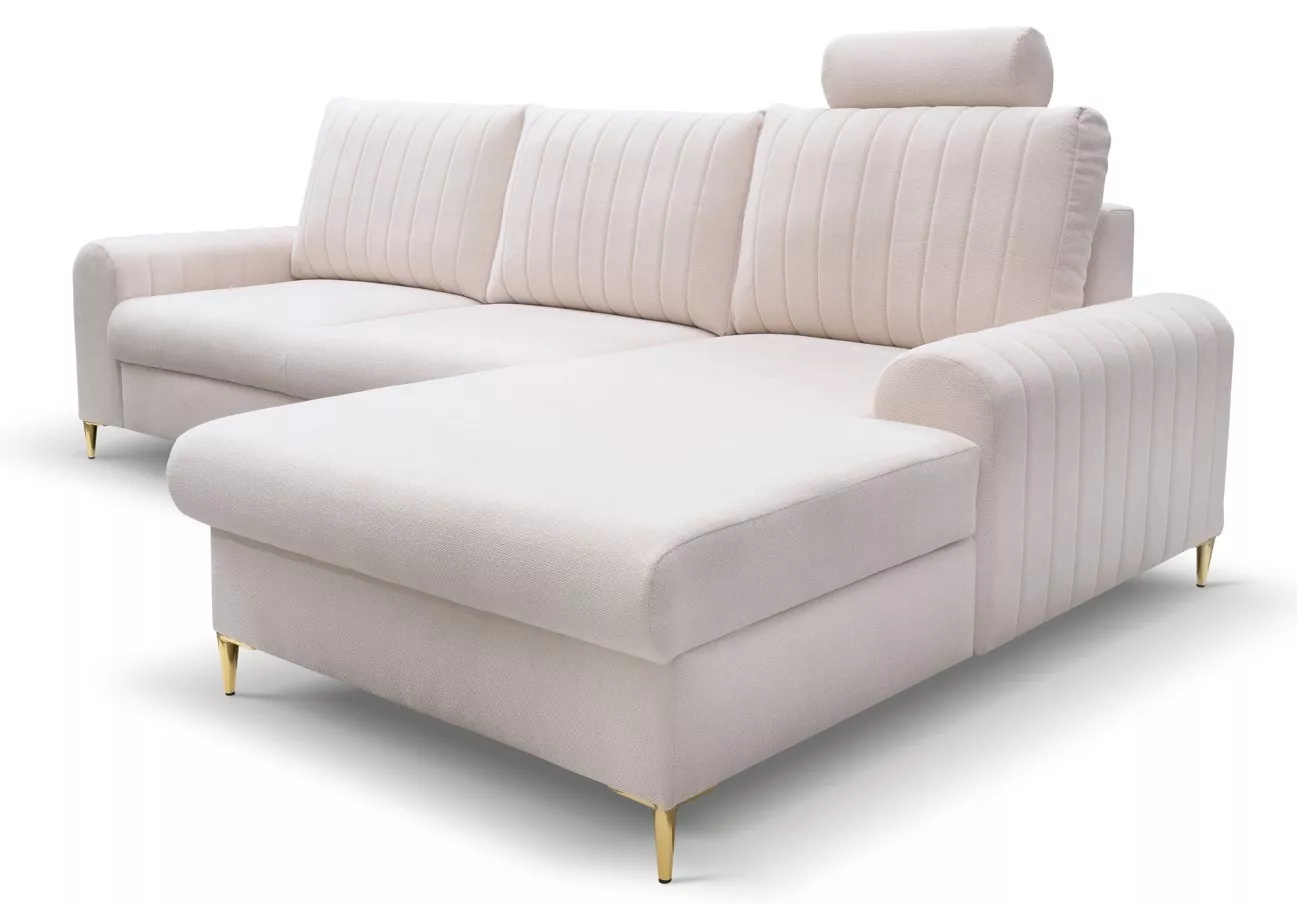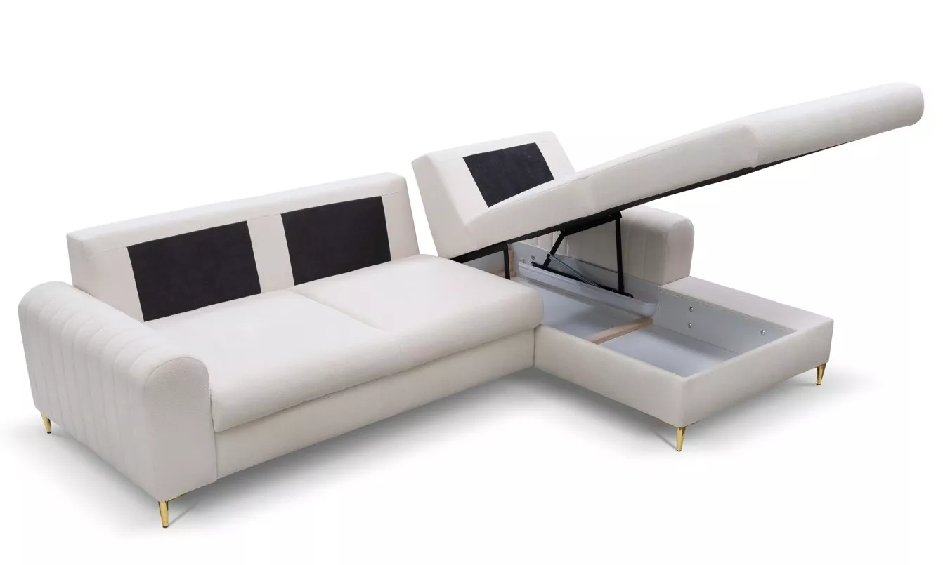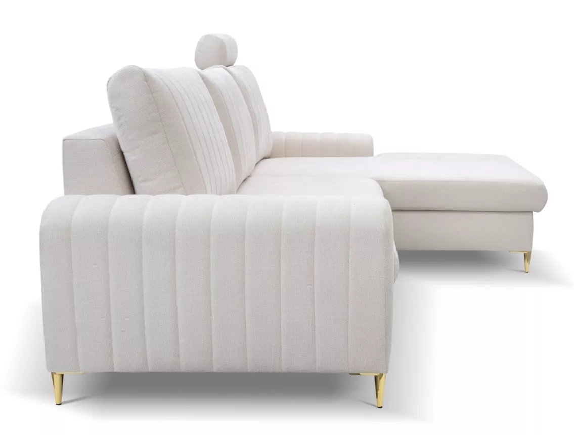 Pořiďte si rohovou sedačku, která okouzlí na první pohled! ESTENVAN s lesklými zlatými nohami a dekorativním prošíváním vnáší do interiéru šmrnc a eleganci. Nechybí ani praktický úložný prostor a možnost rozložení na lůžko 140x212 cm. Perfektní volba pro ty, kdo milují styl i funkčnost.