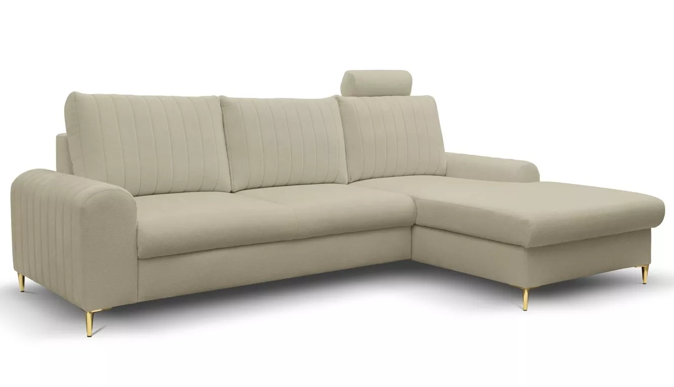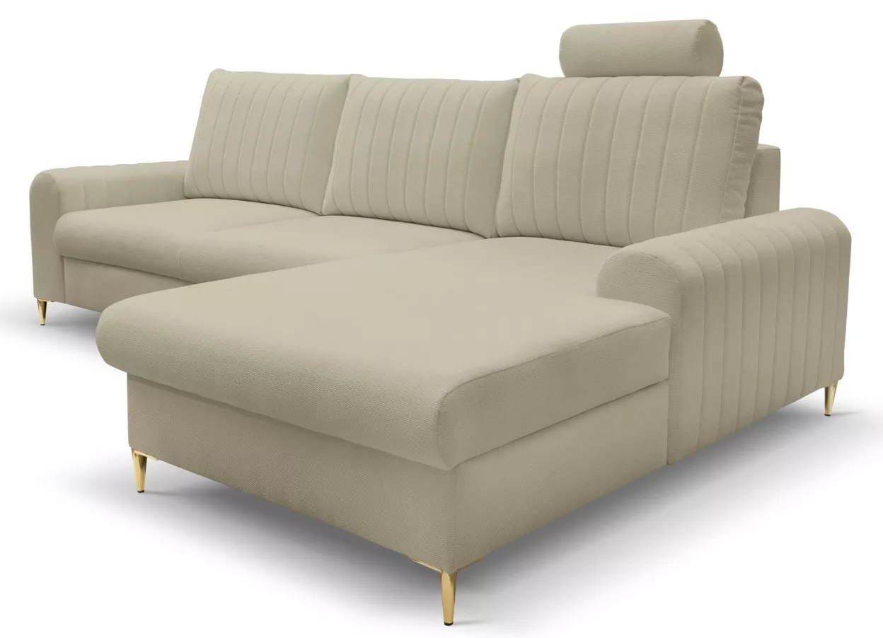 Pořiďte si rohovou sedačku, která okouzlí na první pohled! ESTENVAN s lesklými zlatými nohami a dekorativním prošíváním vnáší do interiéru šmrnc a eleganci. Nechybí ani praktický úložný prostor a možnost rozložení na lůžko 140x212 cm. Perfektní volba pro ty, kdo milují styl i funkčnost.