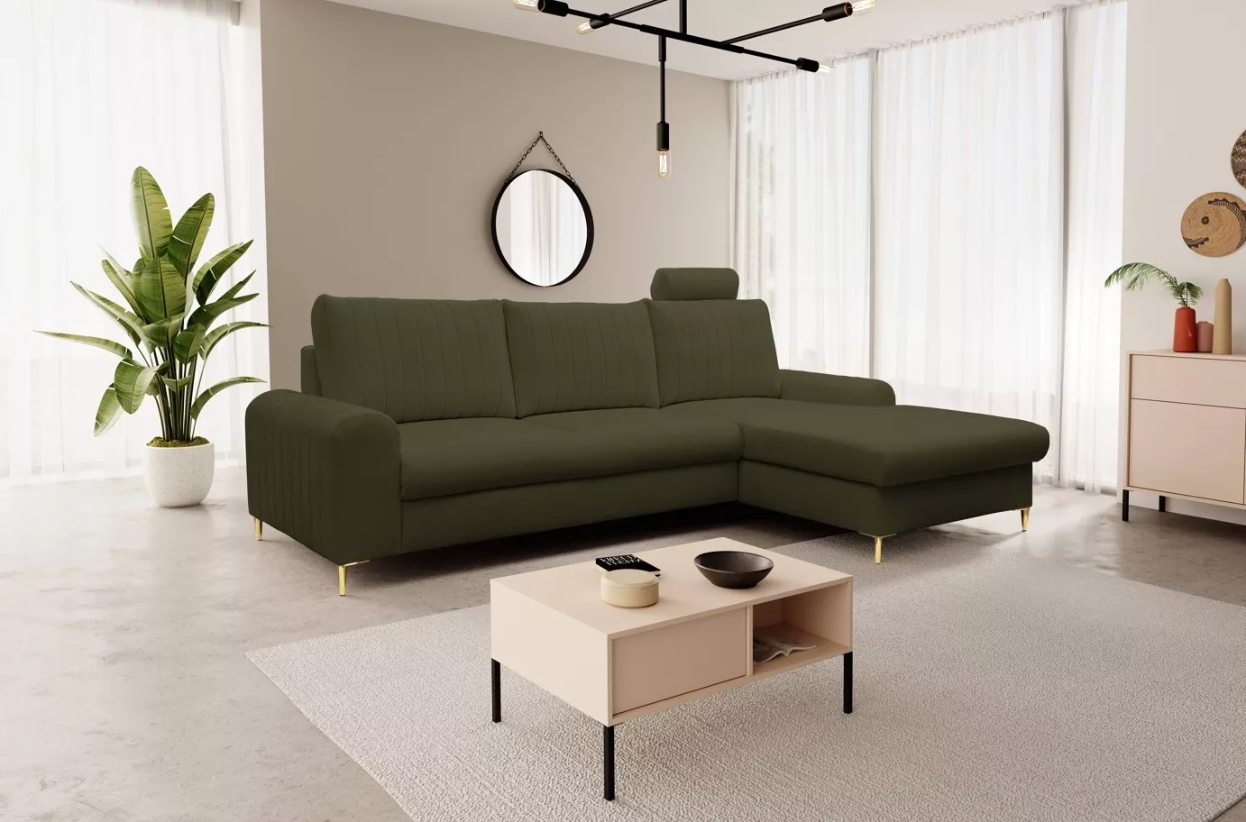 Rohová sedačka s úložným prostorem ESTENVAN - olivová, pravý roh
