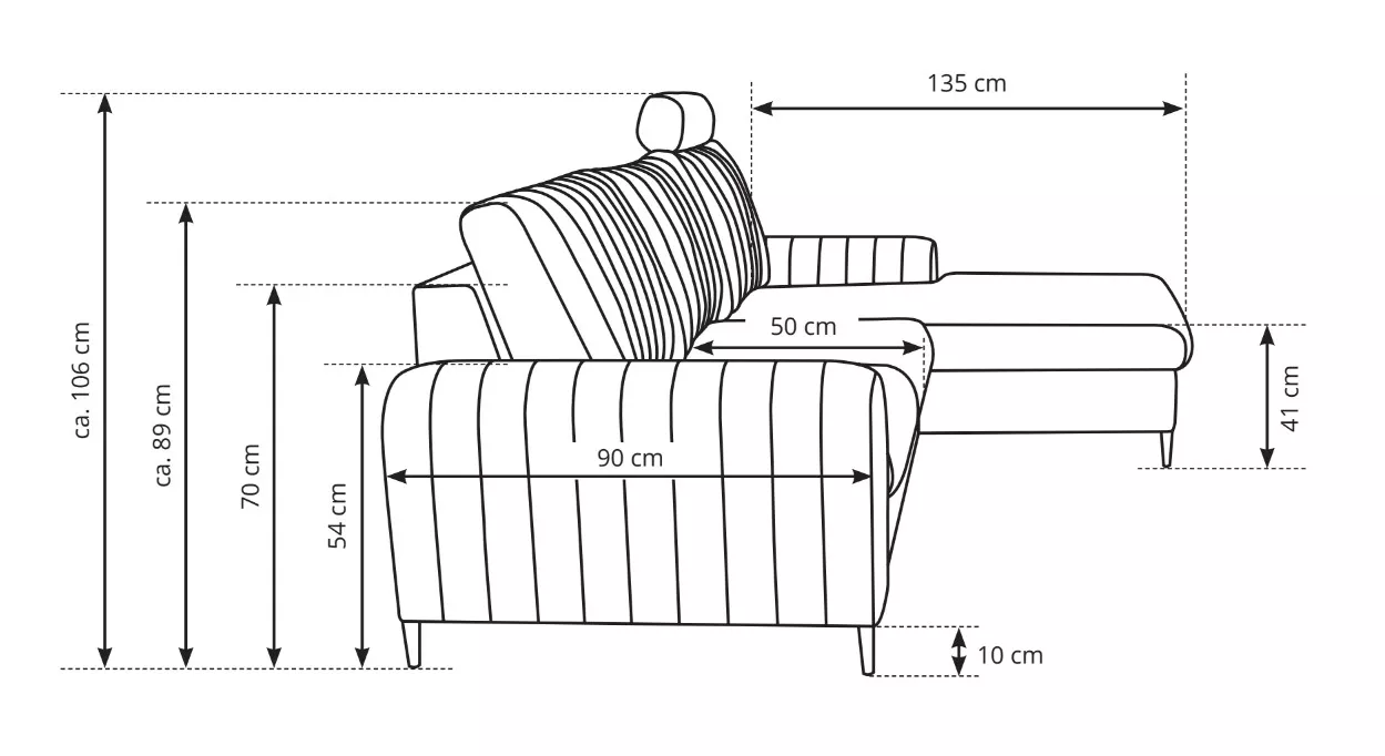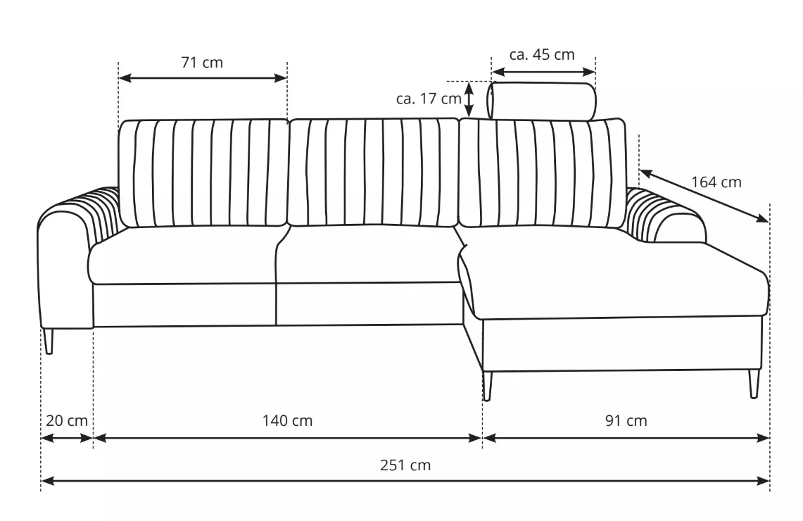 - celočalouněná: ano (potažená stejnou látkou i na zadní straně)