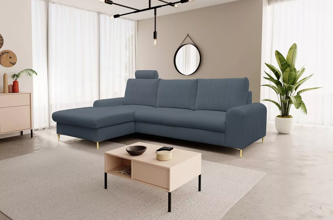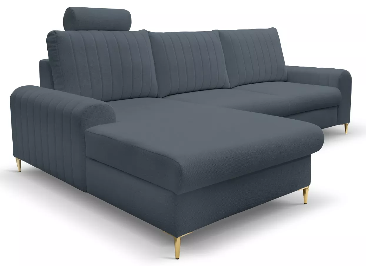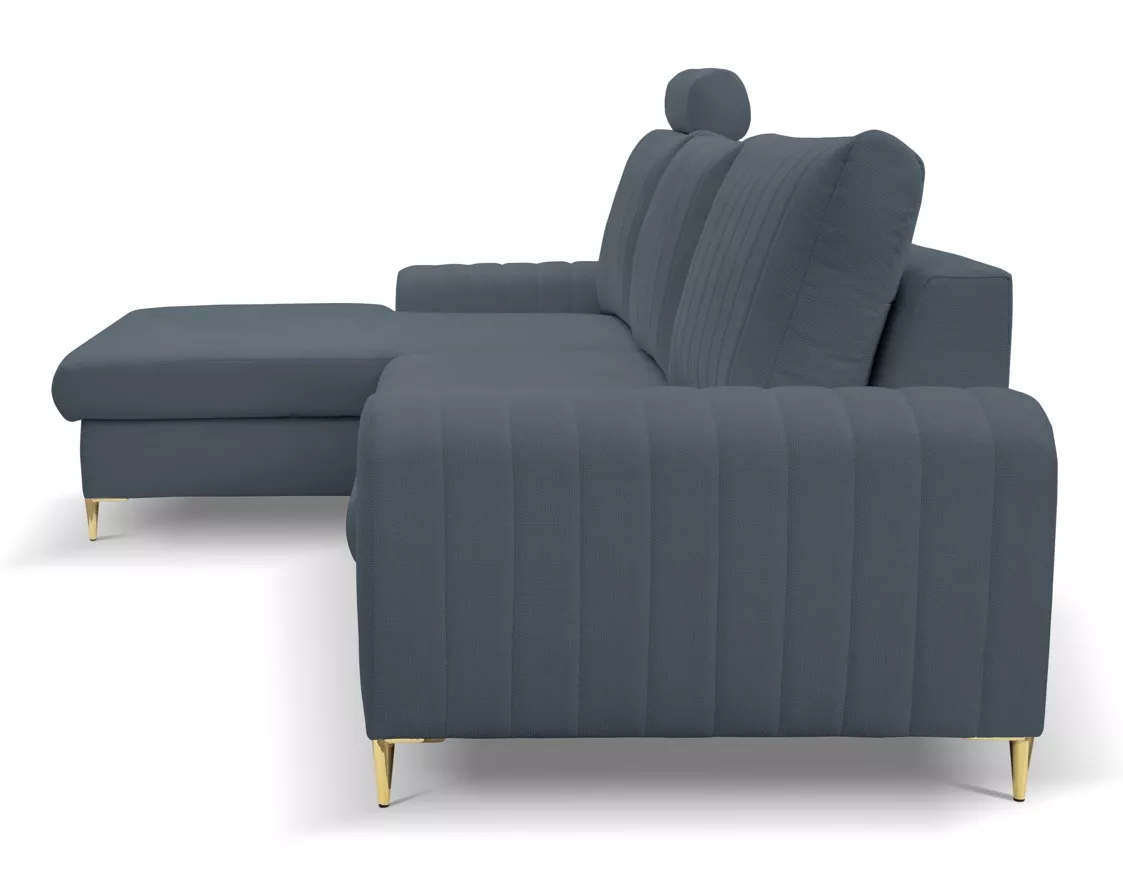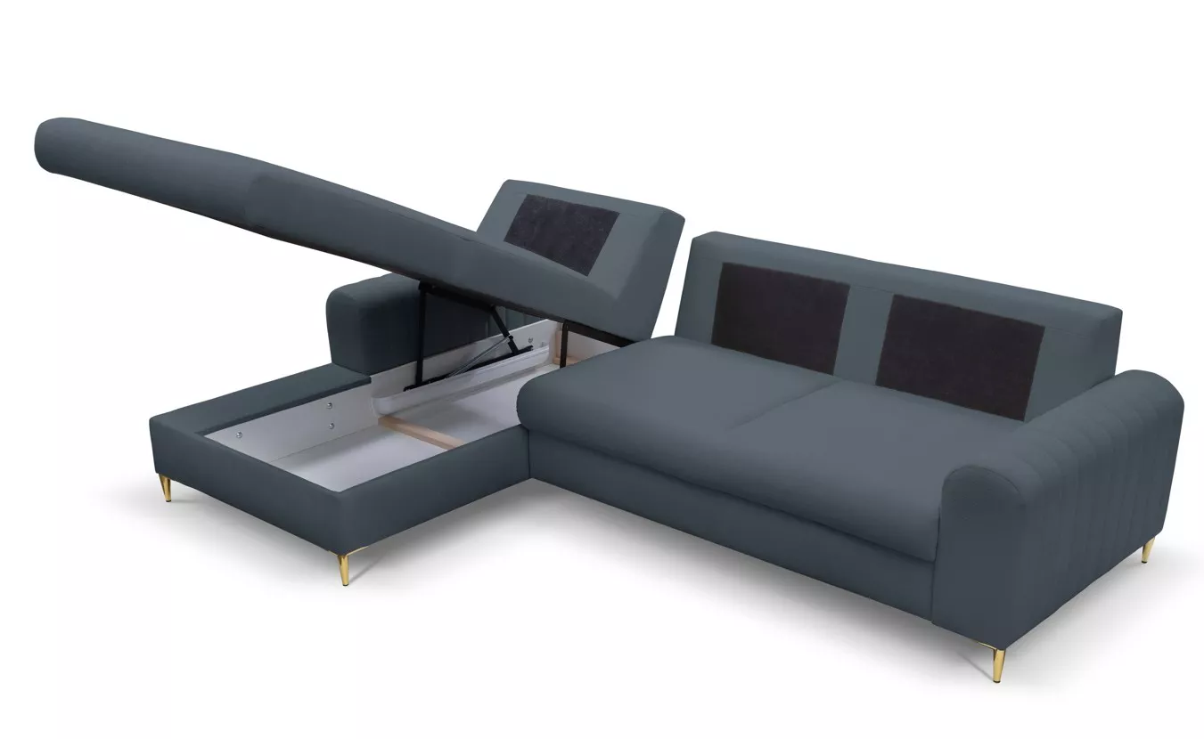 Pořiďte si rohovou sedačku, která okouzlí na první pohled! ESTENVAN s lesklými zlatými nohami a dekorativním prošíváním vnáší do interiéru šmrnc a eleganci. Nechybí ani praktický úložný prostor a možnost rozložení na lůžko 140x212 cm. Perfektní volba pro ty, kdo milují styl i funkčnost.