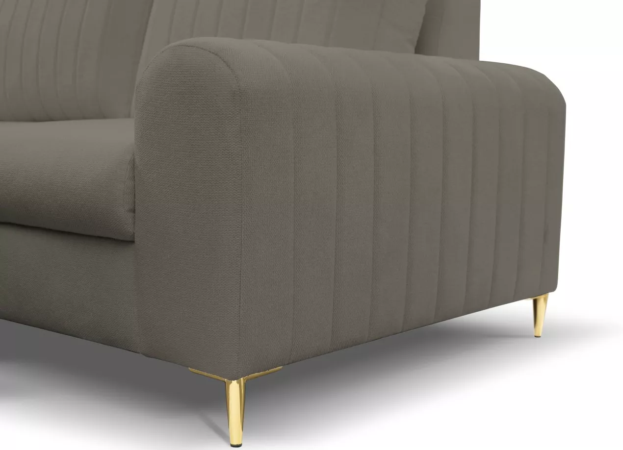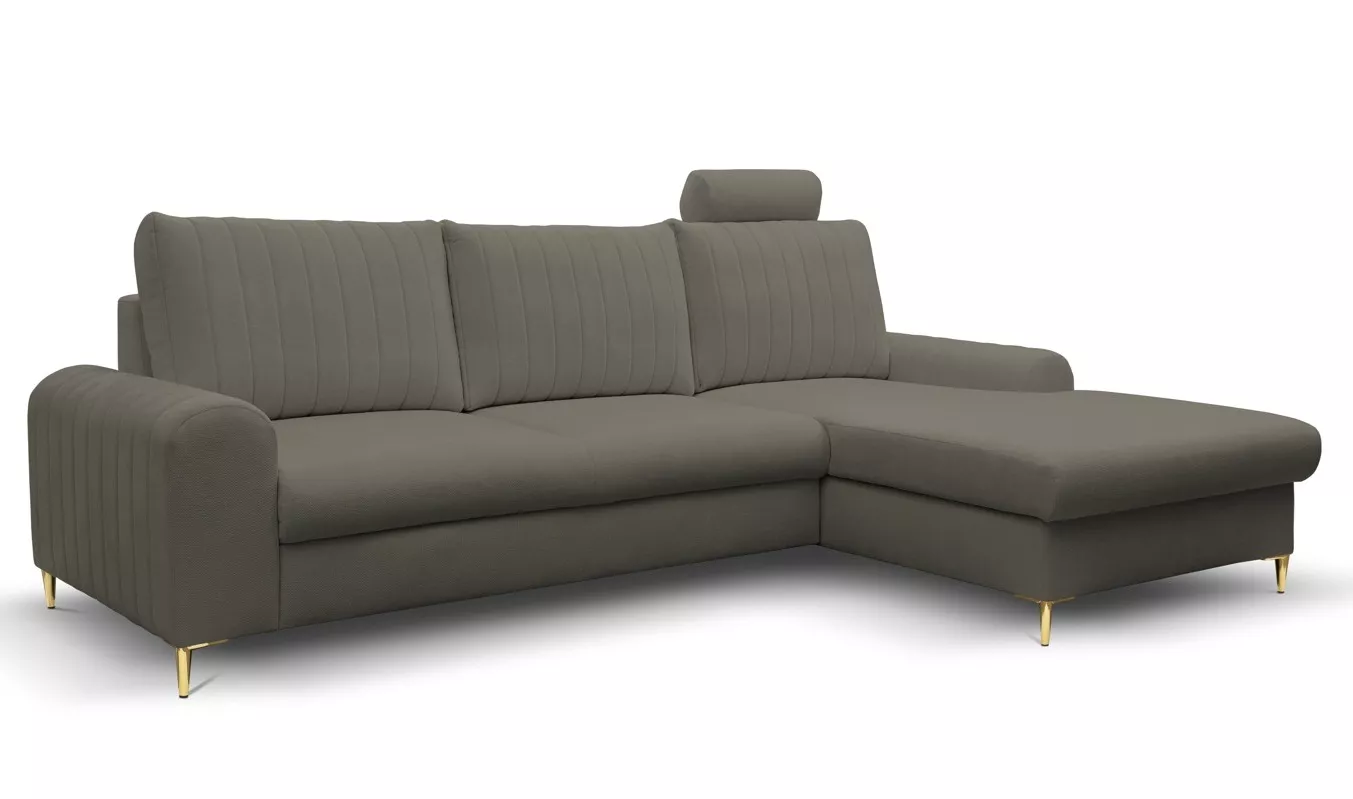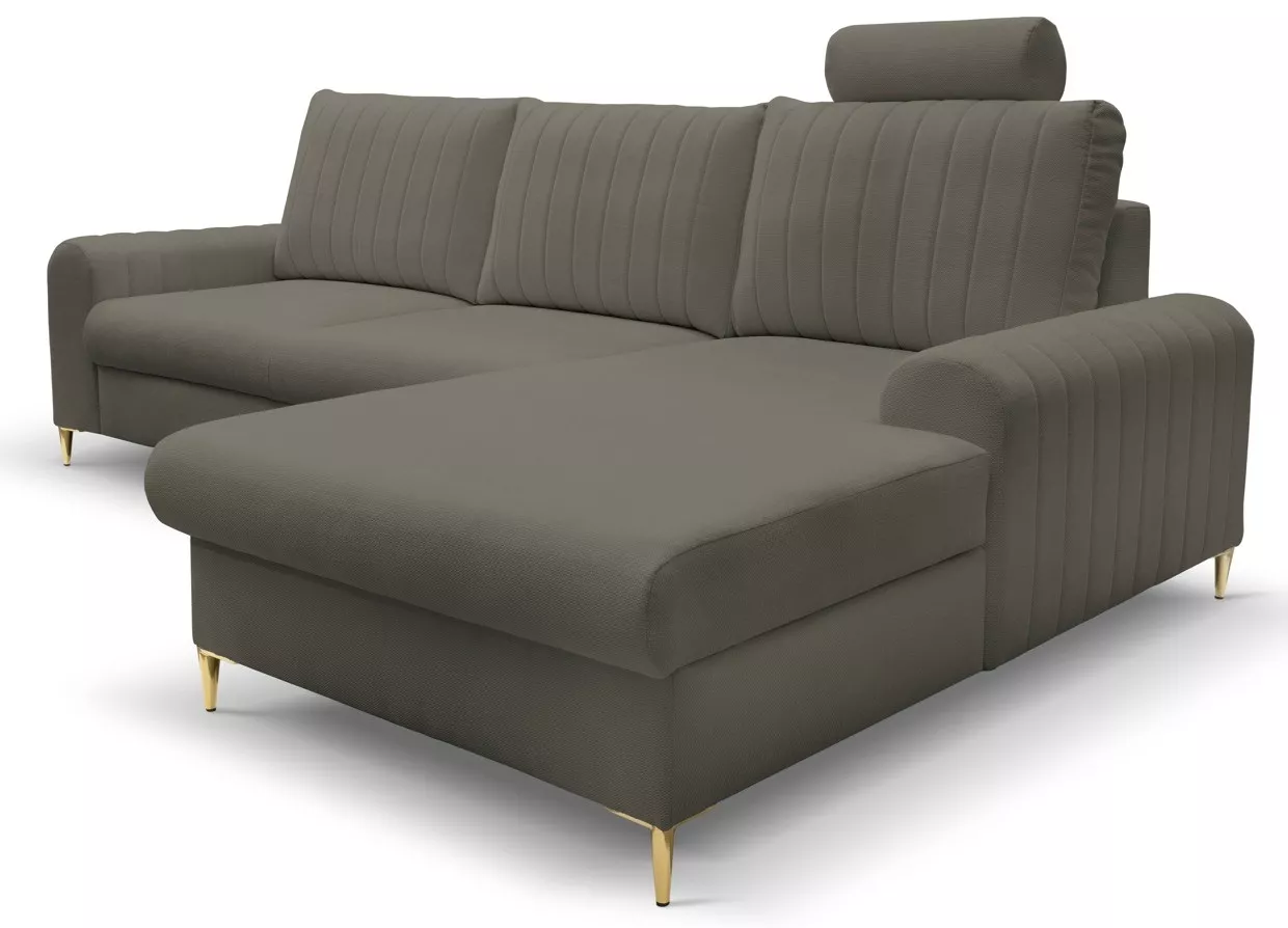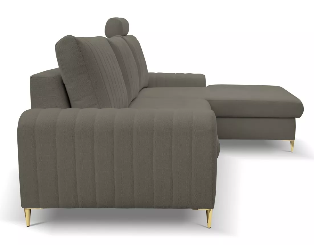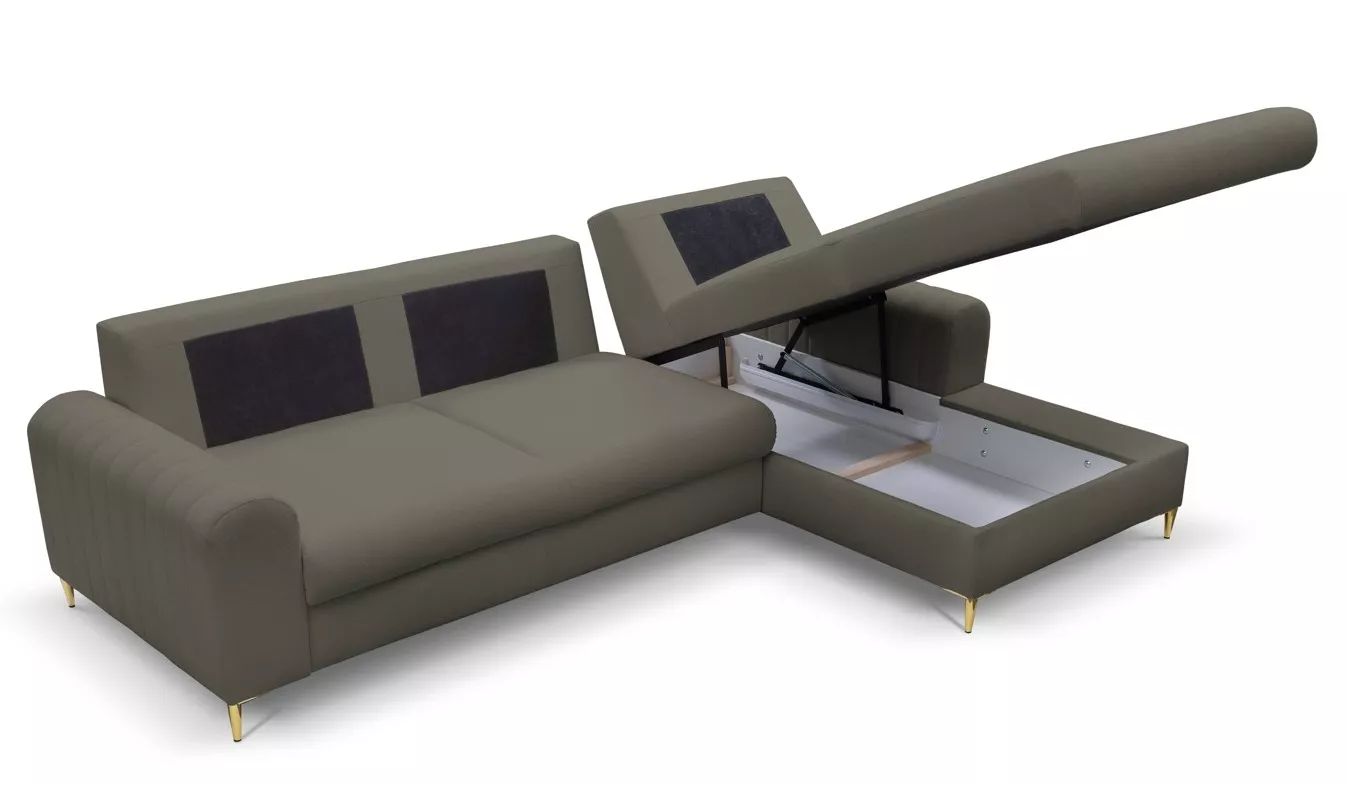 Pořiďte si rohovou sedačku, která okouzlí na první pohled! ESTENVAN s lesklými zlatými nohami a dekorativním prošíváním vnáší do interiéru šmrnc a eleganci. Nechybí ani praktický úložný prostor a možnost rozložení na lůžko 140x212 cm. Perfektní volba pro ty, kdo milují styl i funkčnost.