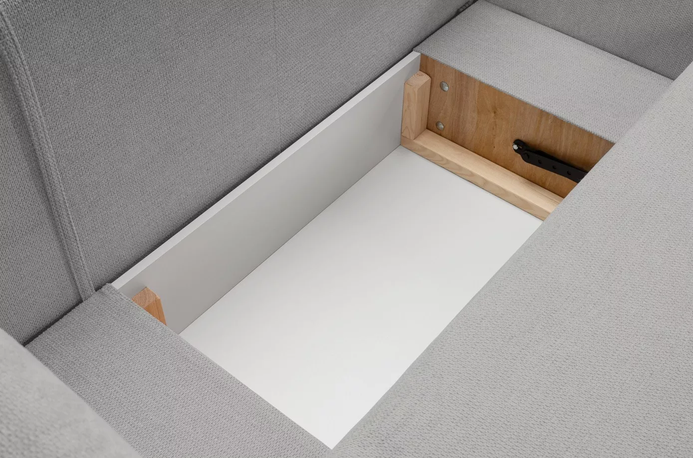 Rozkládací sedačka s úložným prostorem COBOURG 1 - světlá šedá 1, pravý roh