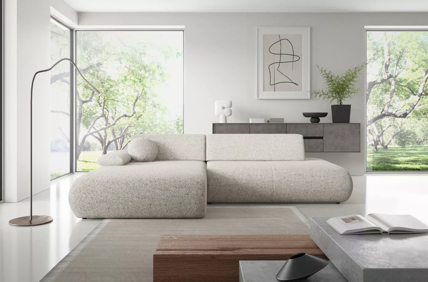 Dopřejte si pohodlí i styl s rohovou sedačkou SURREY 1! Elegantní zaoblené tvary a volně ložené opěrné polštáře vytvoří útulný prostor pro každodenní relax. Díky rozkládací funkci proměníte sedačku na spací lůžko o velikosti 140x213 cm, nechybí ani praktický úložný prostor.