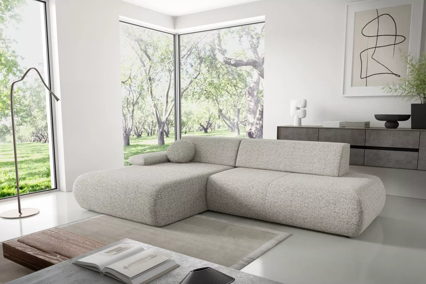 Rozkládací rohová sedačka s úložným prostorem SURREY 1 - světlá popelavá, levý roh