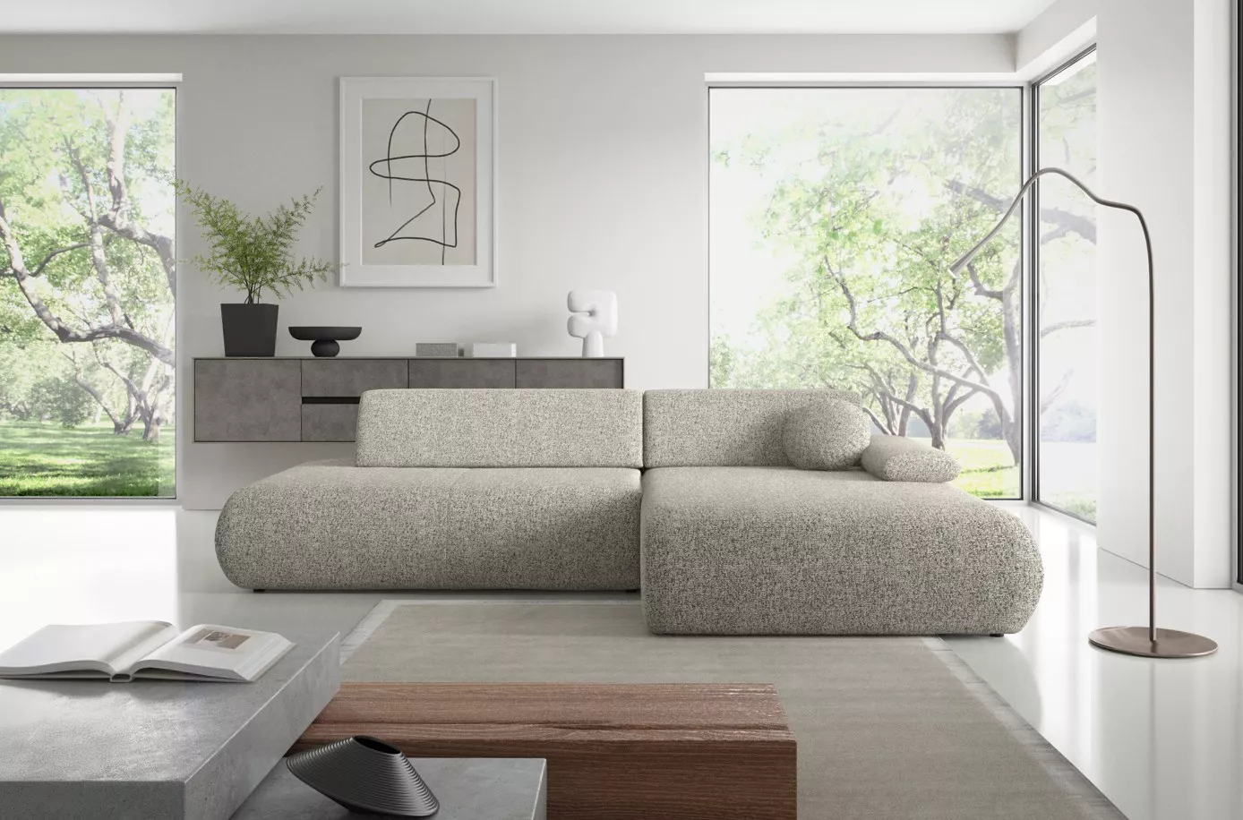 Dopřejte si pohodlí i styl s rohovou sedačkou SURREY 1! Elegantní zaoblené tvary a volně ložené opěrné polštáře vytvoří útulný prostor pro každodenní relax. Díky rozkládací funkci proměníte sedačku na spací lůžko o velikosti 140x213 cm, nechybí ani praktický úložný prostor.