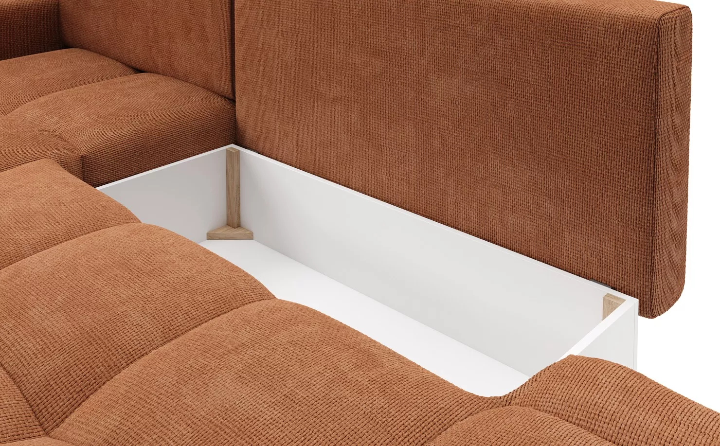 Rozkládací sedačka s úložným prostorem TRURO 1 - cihlová, levý roh