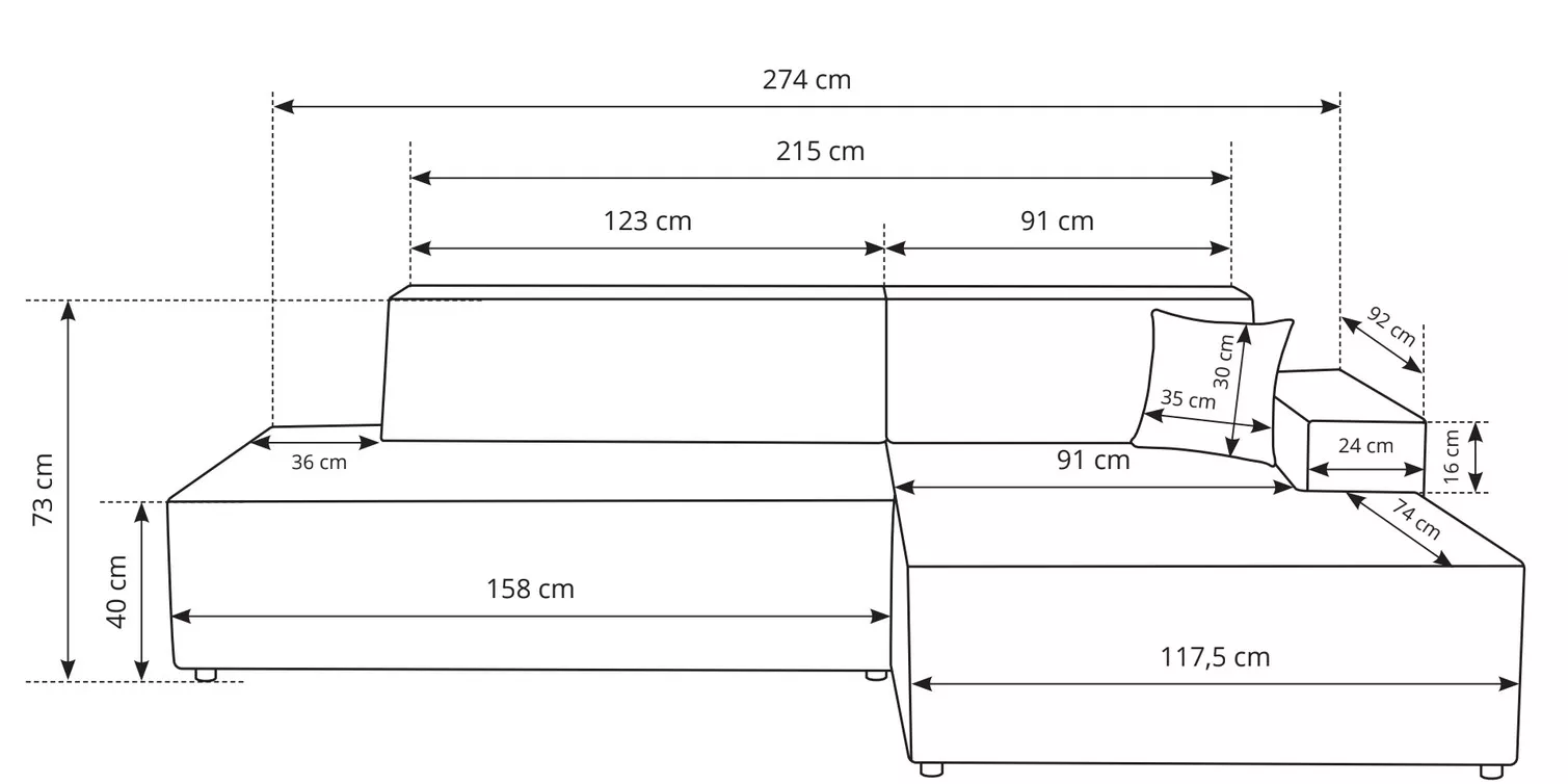 Dopřejte si jedinečné pohodlí s rohovou sedačkou WINDSOR! Čistý moderní design s volně loženými opěrnými polštáři zve k nekonečné relaxaci. Jedním pohybem proměníte sedačku v pohodlné lůžko o velikosti 140x213 cm, kam se rádi natáhnete po dlouhém dni. Nechybí ani úložný prostor a stylový dekorativní polštářek, který dostanete jako bonus.