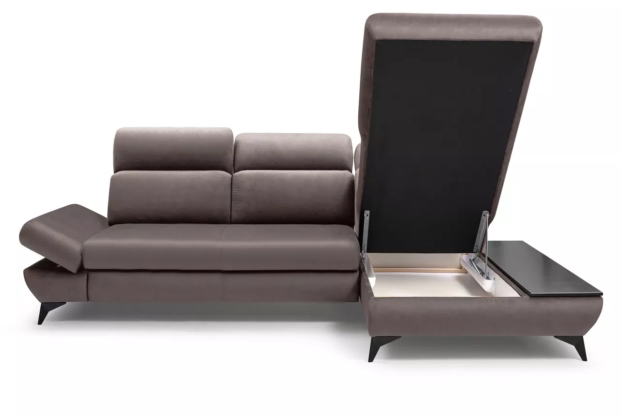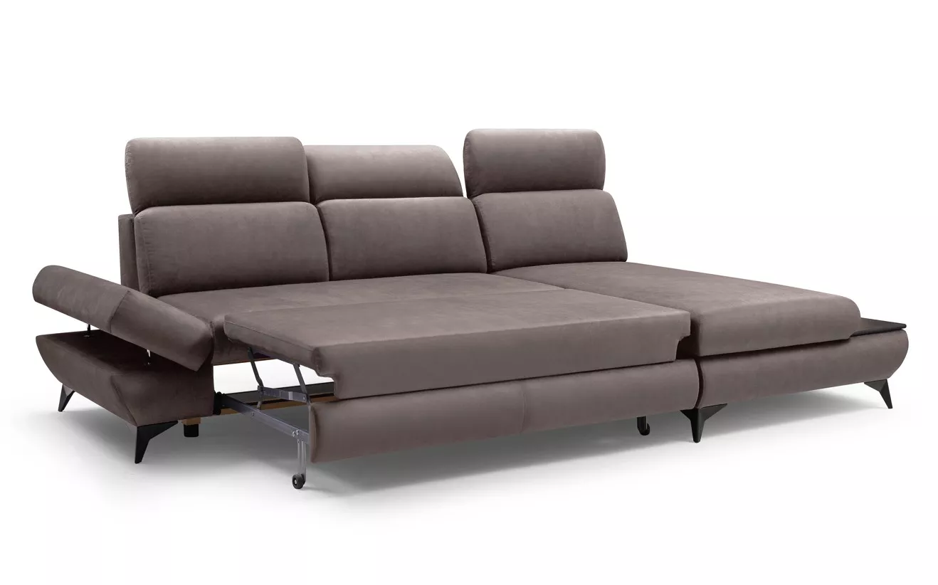 Dopřejte si originální designový kousek, který promění váš obývák v moderní útočiště. Sedačka SARNIA zaujme praktickou policí, kam si můžete odložit knihu či hrnek s kávou. Polohovatelné opěrky hlavy a nastavitelné loketní opěrky se postarají o maximální pohodlí každý den. Sedačku snadno rozložíte na prostorné lůžko o velikosti 125x216 cm, navíc vás mile překvapí šikovný úložný prostor.