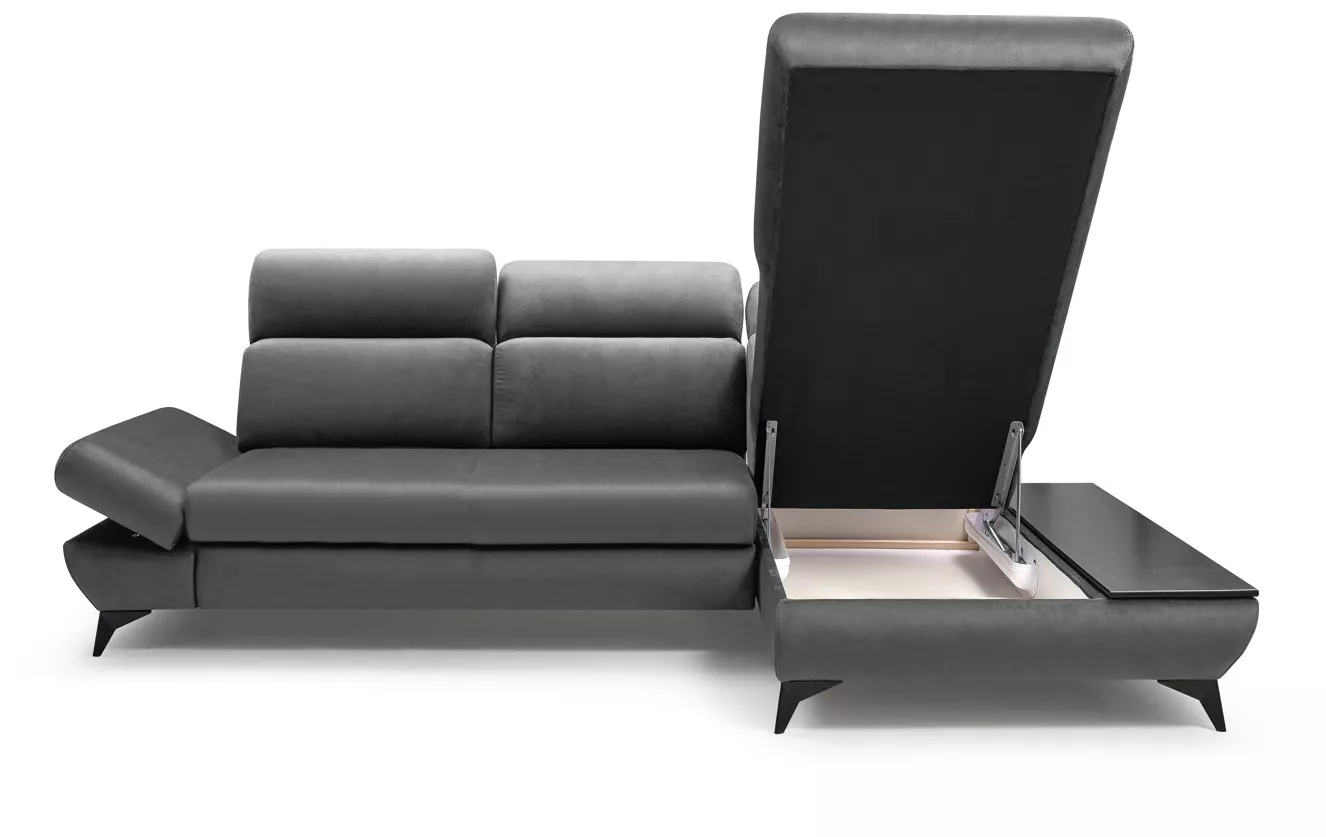 Dopřejte si originální designový kousek, který promění váš obývák v moderní útočiště. Sedačka SARNIA zaujme praktickou policí, kam si můžete odložit knihu či hrnek s kávou. Polohovatelné opěrky hlavy a nastavitelné loketní opěrky se postarají o maximální pohodlí každý den. Sedačku snadno rozložíte na prostorné lůžko o velikosti 125x216 cm, navíc vás mile překvapí šikovný úložný prostor.