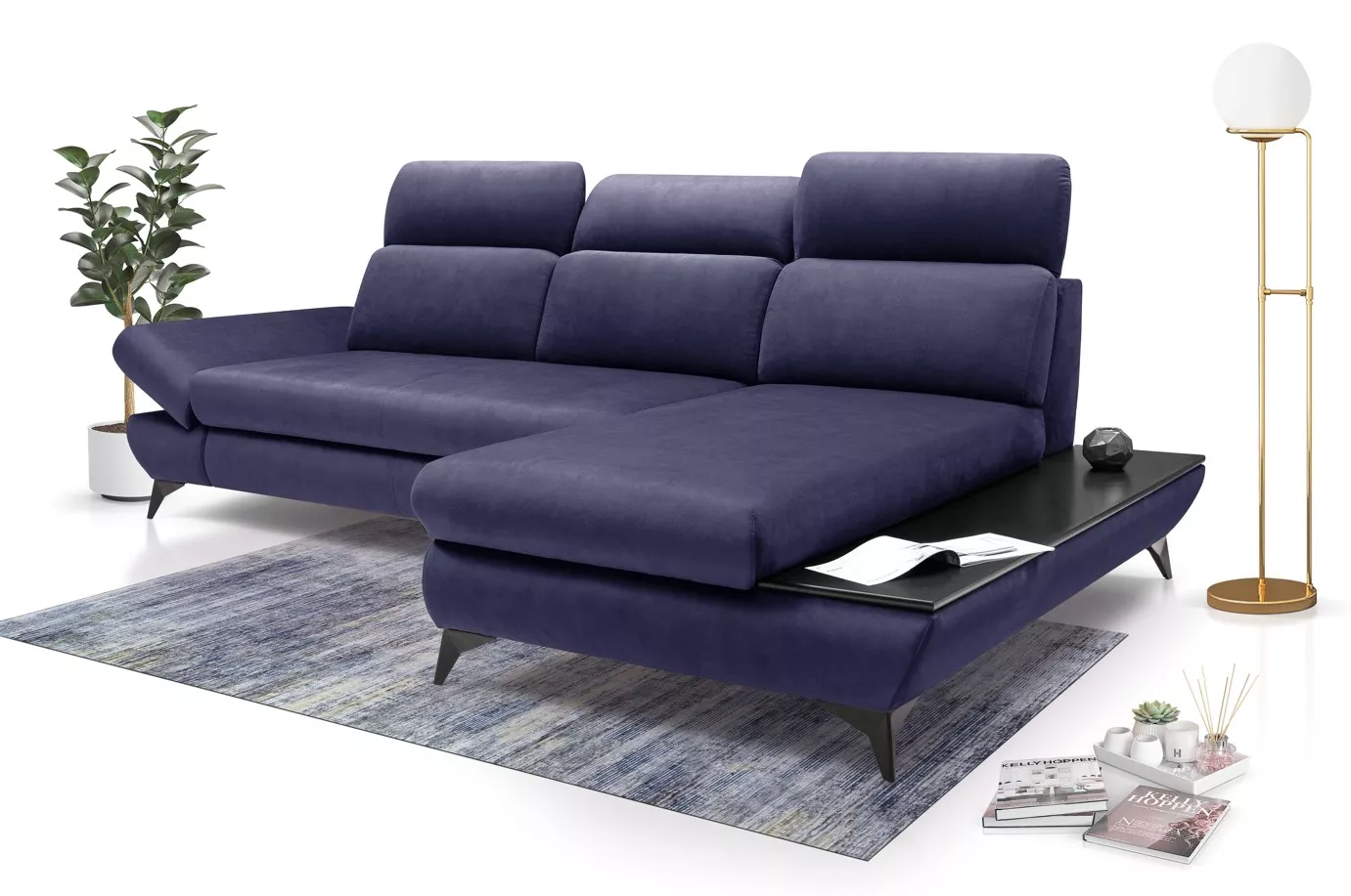Rohová rozkládací sedací souprava SARNIA - námořnická modrá, pravý roh