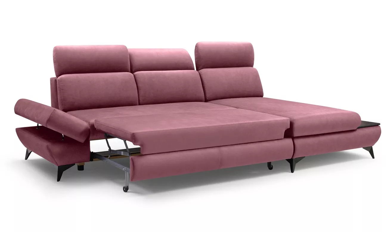 Rohová rozkládací sedací souprava SARNIA - růžová, pravý roh