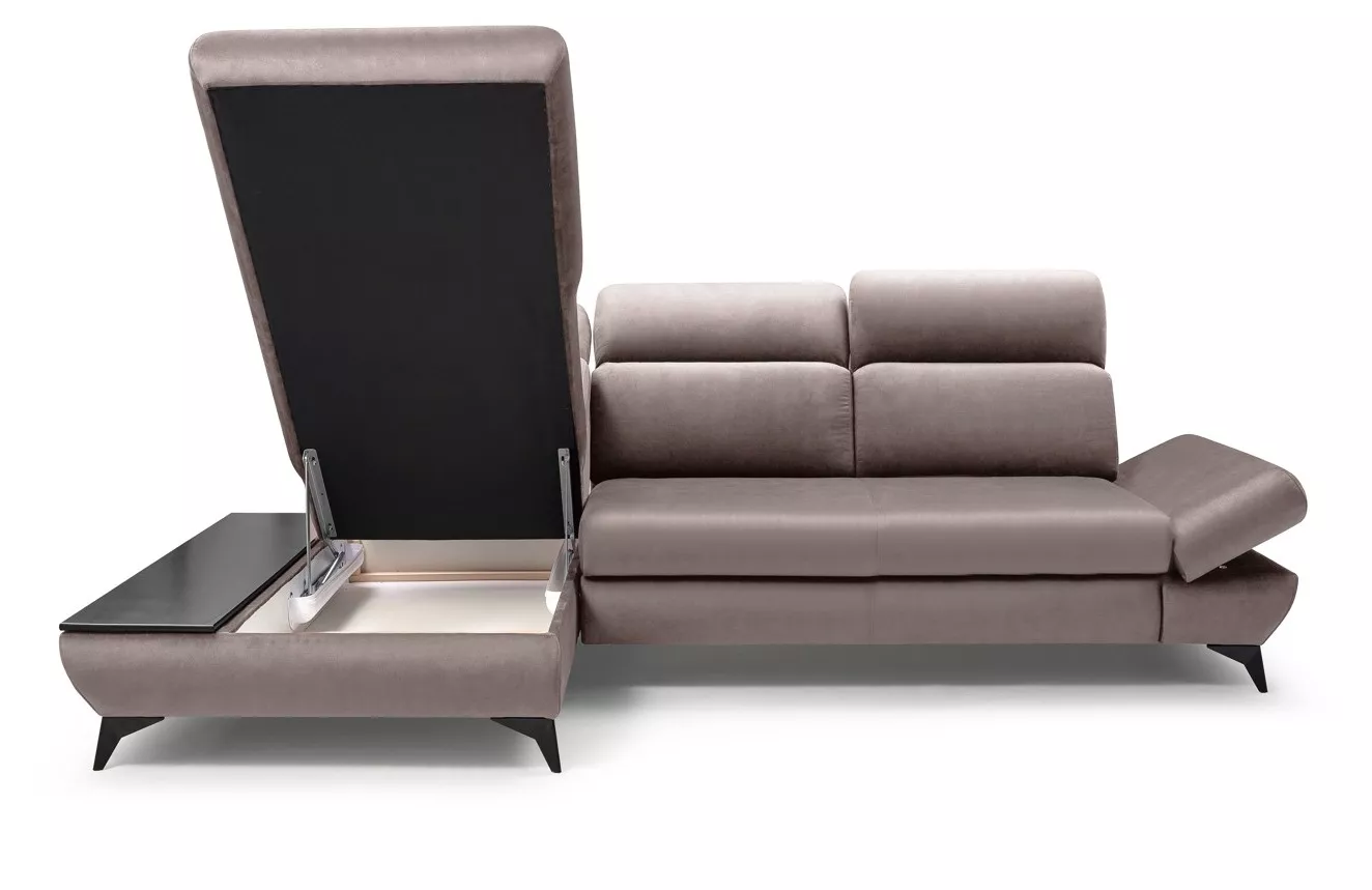 Dopřejte si originální designový kousek, který promění váš obývák v moderní útočiště. Sedačka SARNIA zaujme praktickou policí, kam si můžete odložit knihu či hrnek s kávou. Polohovatelné opěrky hlavy a nastavitelné loketní opěrky se postarají o maximální pohodlí každý den. Sedačku snadno rozložíte na prostorné lůžko o velikosti 125x216 cm, navíc vás mile překvapí šikovný úložný prostor.