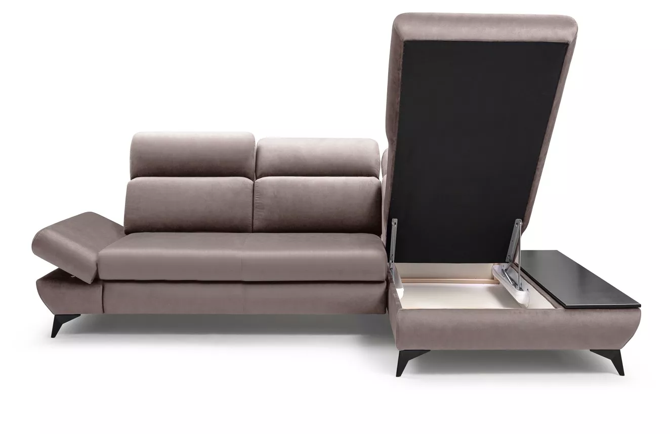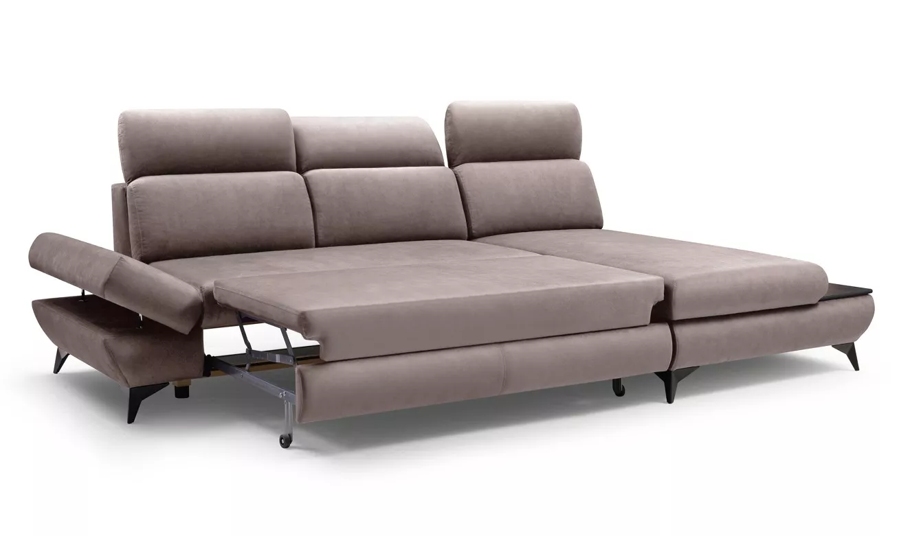 Dopřejte si originální designový kousek, který promění váš obývák v moderní útočiště. Sedačka SARNIA zaujme praktickou policí, kam si můžete odložit knihu či hrnek s kávou. Polohovatelné opěrky hlavy a nastavitelné loketní opěrky se postarají o maximální pohodlí každý den. Sedačku snadno rozložíte na prostorné lůžko o velikosti 125x216 cm, navíc vás mile překvapí šikovný úložný prostor.