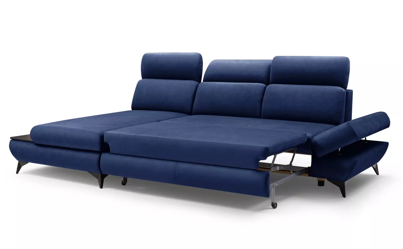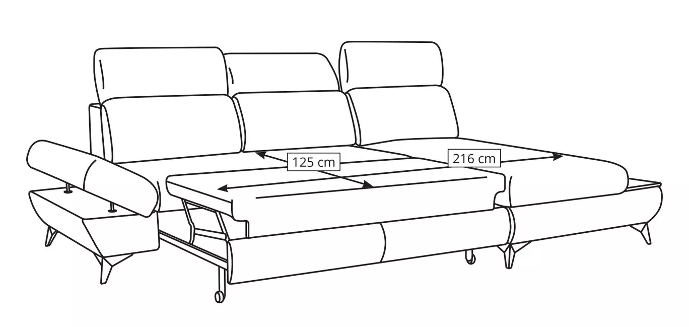 Dopřejte si originální designový kousek, který promění váš obývák v moderní útočiště. Sedačka SARNIA zaujme praktickou policí, kam si můžete odložit knihu či hrnek s kávou. Polohovatelné opěrky hlavy a nastavitelné loketní opěrky se postarají o maximální pohodlí každý den. Sedačku snadno rozložíte na prostorné lůžko o velikosti 125x216 cm, navíc vás mile překvapí šikovný úložný prostor.