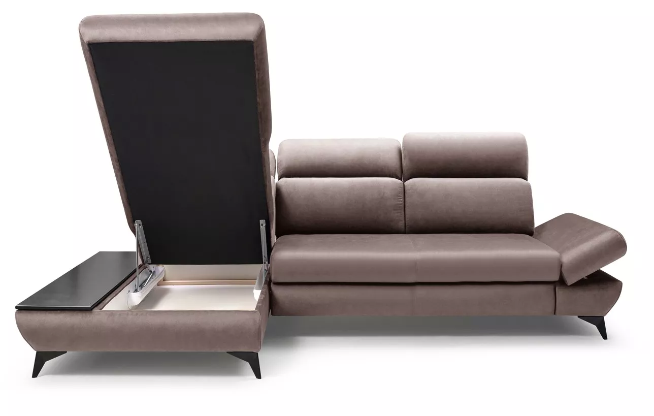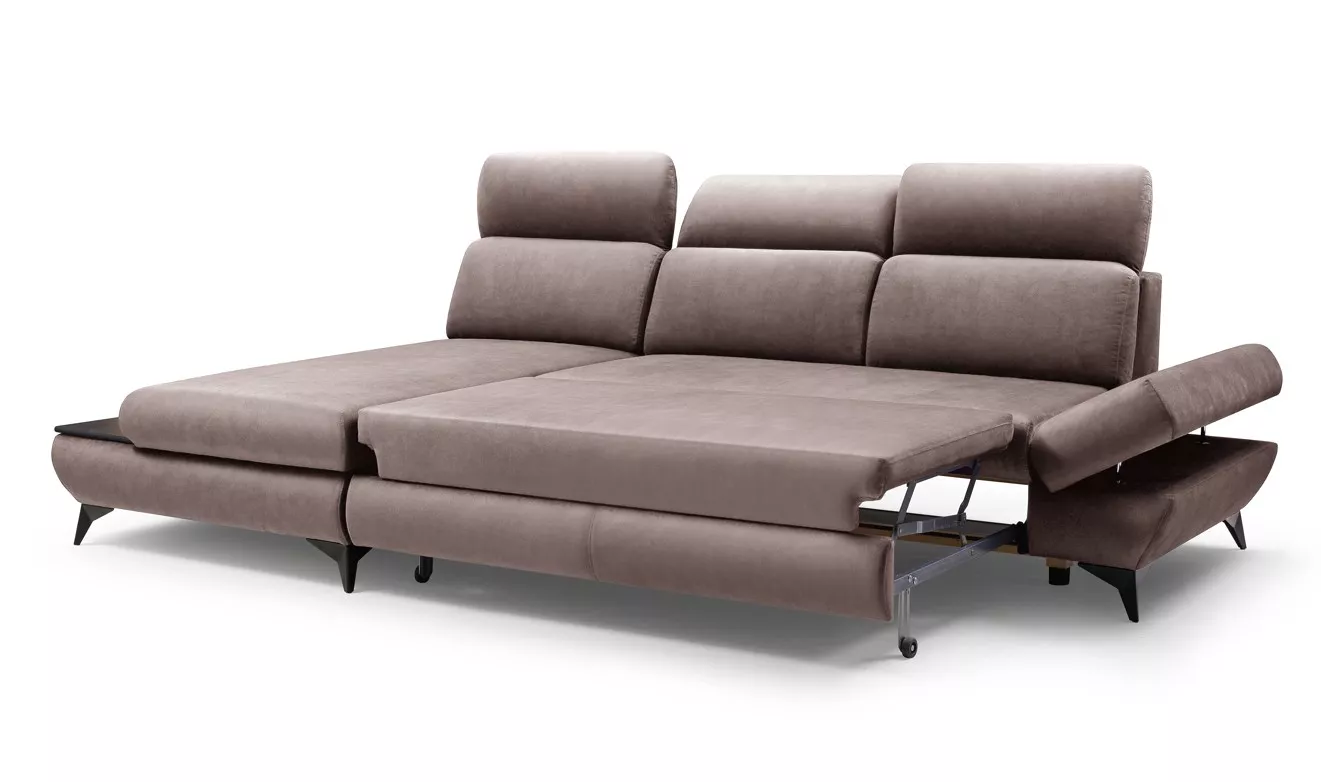 Dopřejte si originální designový kousek, který promění váš obývák v moderní útočiště. Sedačka SARNIA zaujme praktickou policí, kam si můžete odložit knihu či hrnek s kávou. Polohovatelné opěrky hlavy a nastavitelné loketní opěrky se postarají o maximální pohodlí každý den. Sedačku snadno rozložíte na prostorné lůžko o velikosti 125x216 cm, navíc vás mile překvapí šikovný úložný prostor.