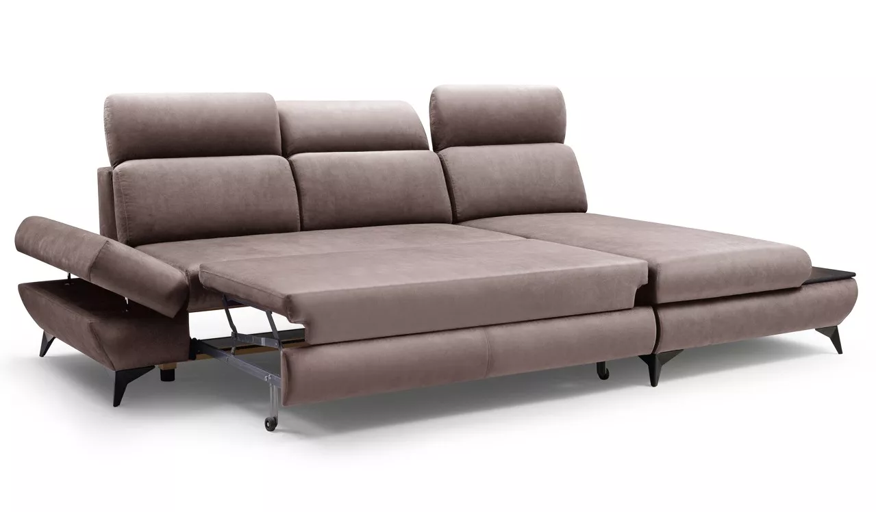 Dopřejte si originální designový kousek, který promění váš obývák v moderní útočiště. Sedačka SARNIA zaujme praktickou policí, kam si můžete odložit knihu či hrnek s kávou. Polohovatelné opěrky hlavy a nastavitelné loketní opěrky se postarají o maximální pohodlí každý den. Sedačku snadno rozložíte na prostorné lůžko o velikosti 125x216 cm, navíc vás mile překvapí šikovný úložný prostor.