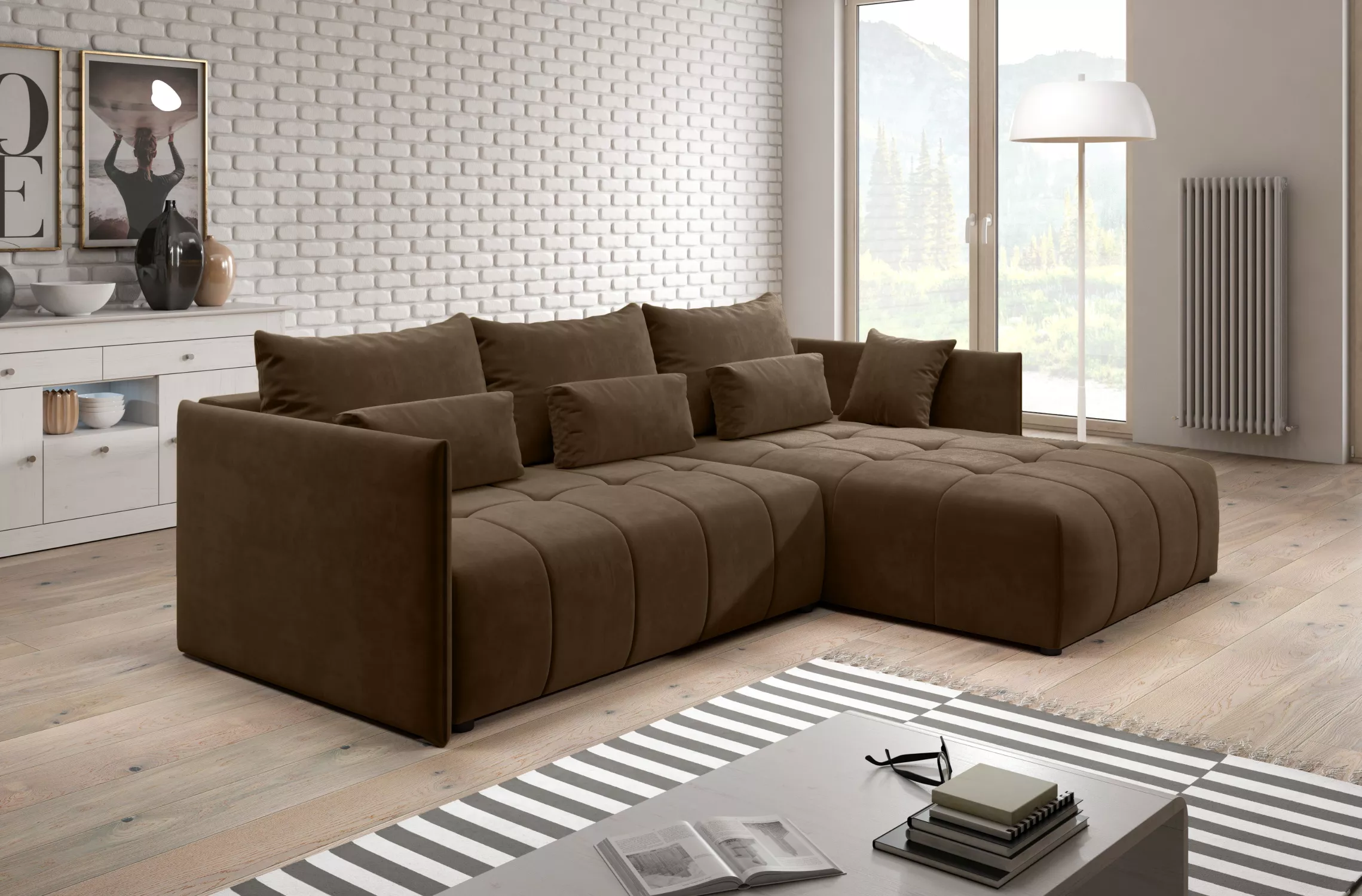 Designová sedací souprava ILONIE zaujme především svým prošívaným sedákem a množstvím polštářů. Rozkládací funkce a úložný prostor zpříjemní každodenní používání. Díky masivní konstrukci vám sedačka bude sloužit mnoho let.