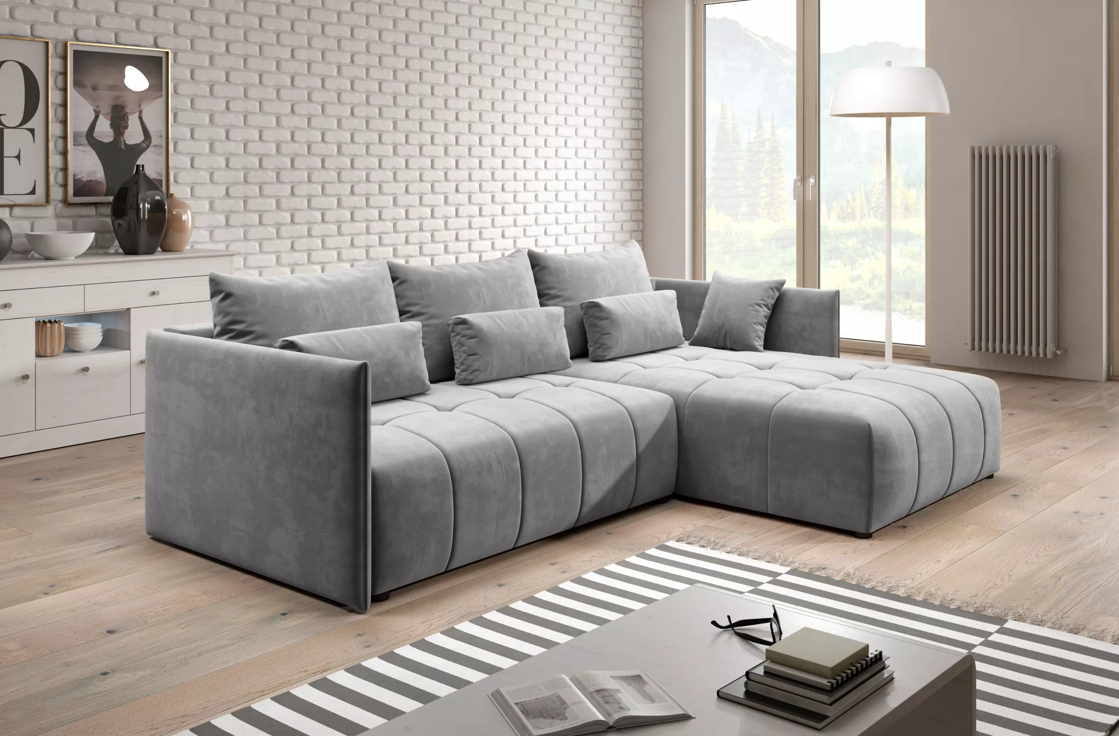 Designová sedací souprava ILONIE zaujme především svým prošívaným sedákem a množstvím polštářů. Rozkládací funkce a úložný prostor zpříjemní každodenní používání. Díky masivní konstrukci vám sedačka bude sloužit mnoho let.