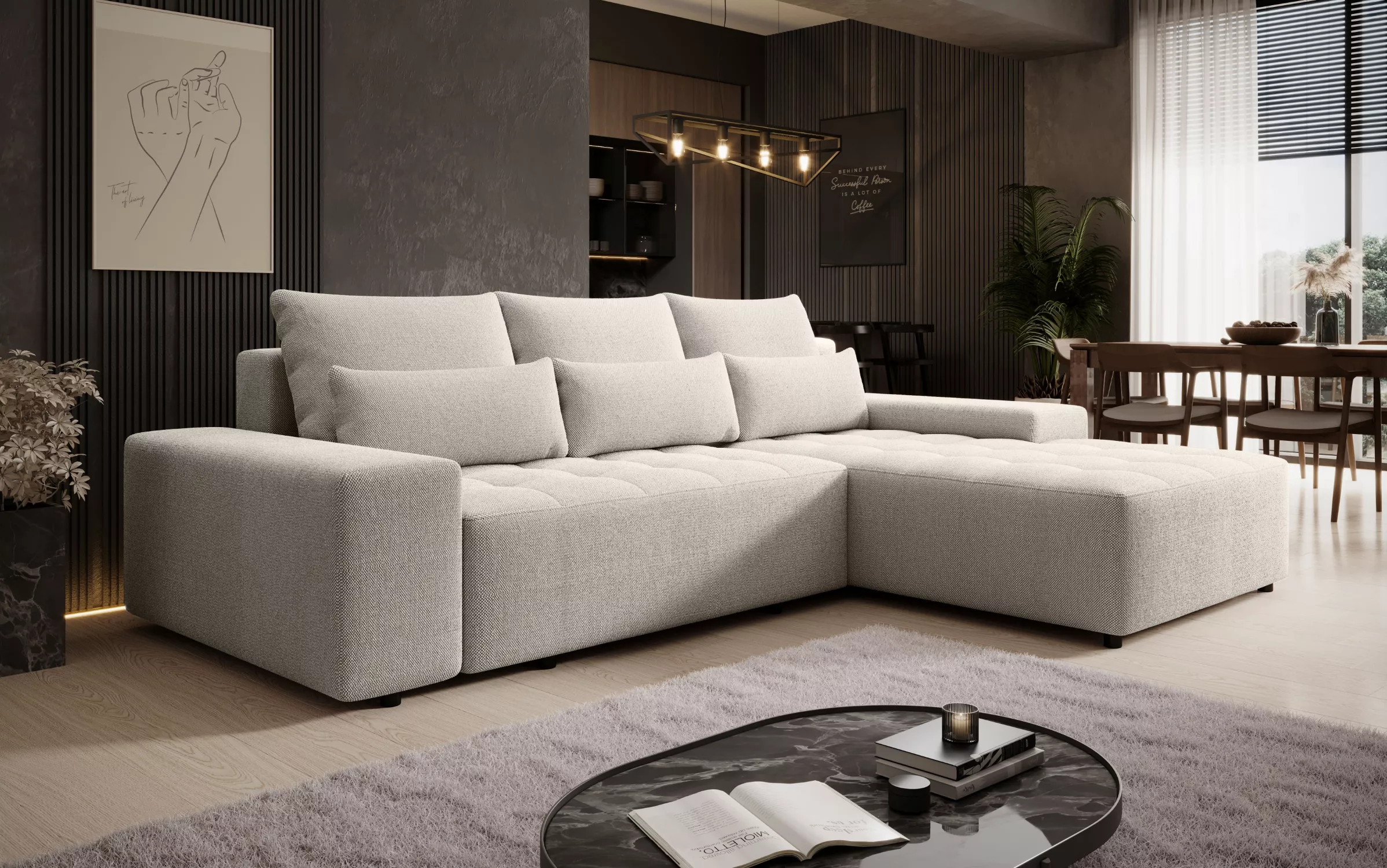 Elegantní sedací souprava EDITA skvěle zapadne do všech moderních a minimalistických interiérů. Opěradlo ve formě volně ložených polštářů zpříjemní každodenní odpočinek. Sedačka disponuje úložným prostorem a rozkládací funkcí.