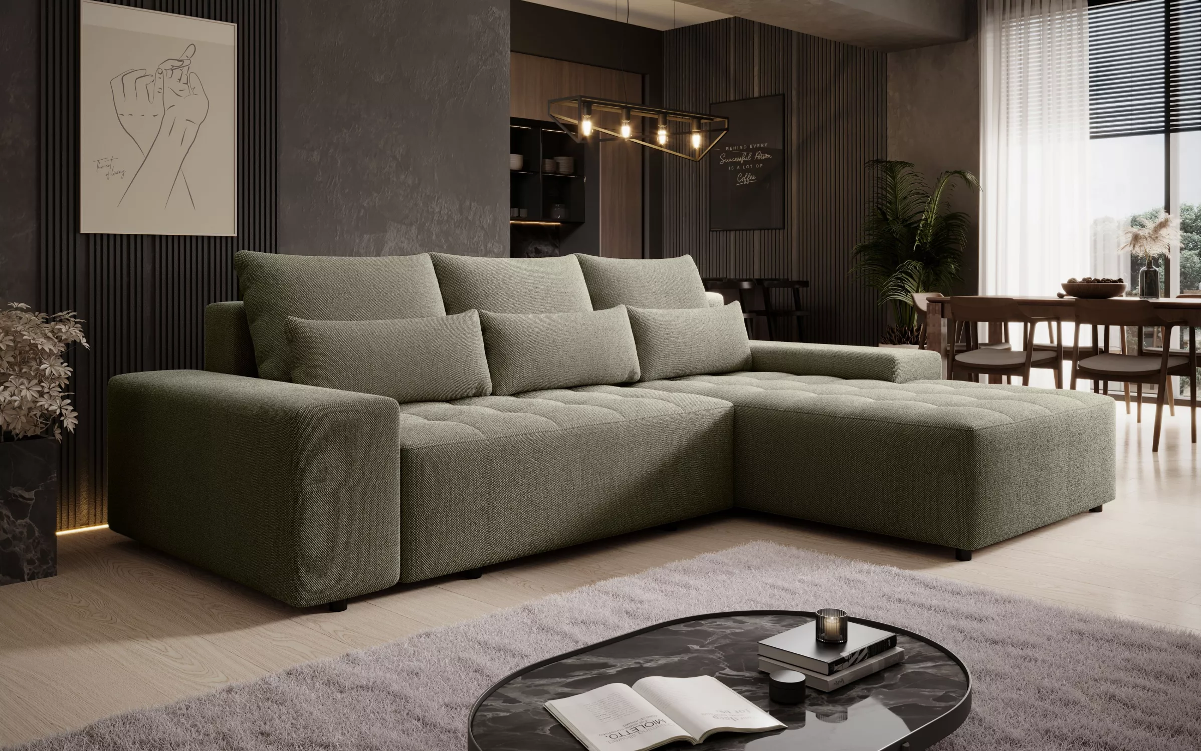 Elegantní sedací souprava EDITA skvěle zapadne do všech moderních a minimalistických interiérů. Opěradlo ve formě volně ložených polštářů zpříjemní každodenní odpočinek. Sedačka disponuje úložným prostorem a rozkládací funkcí.