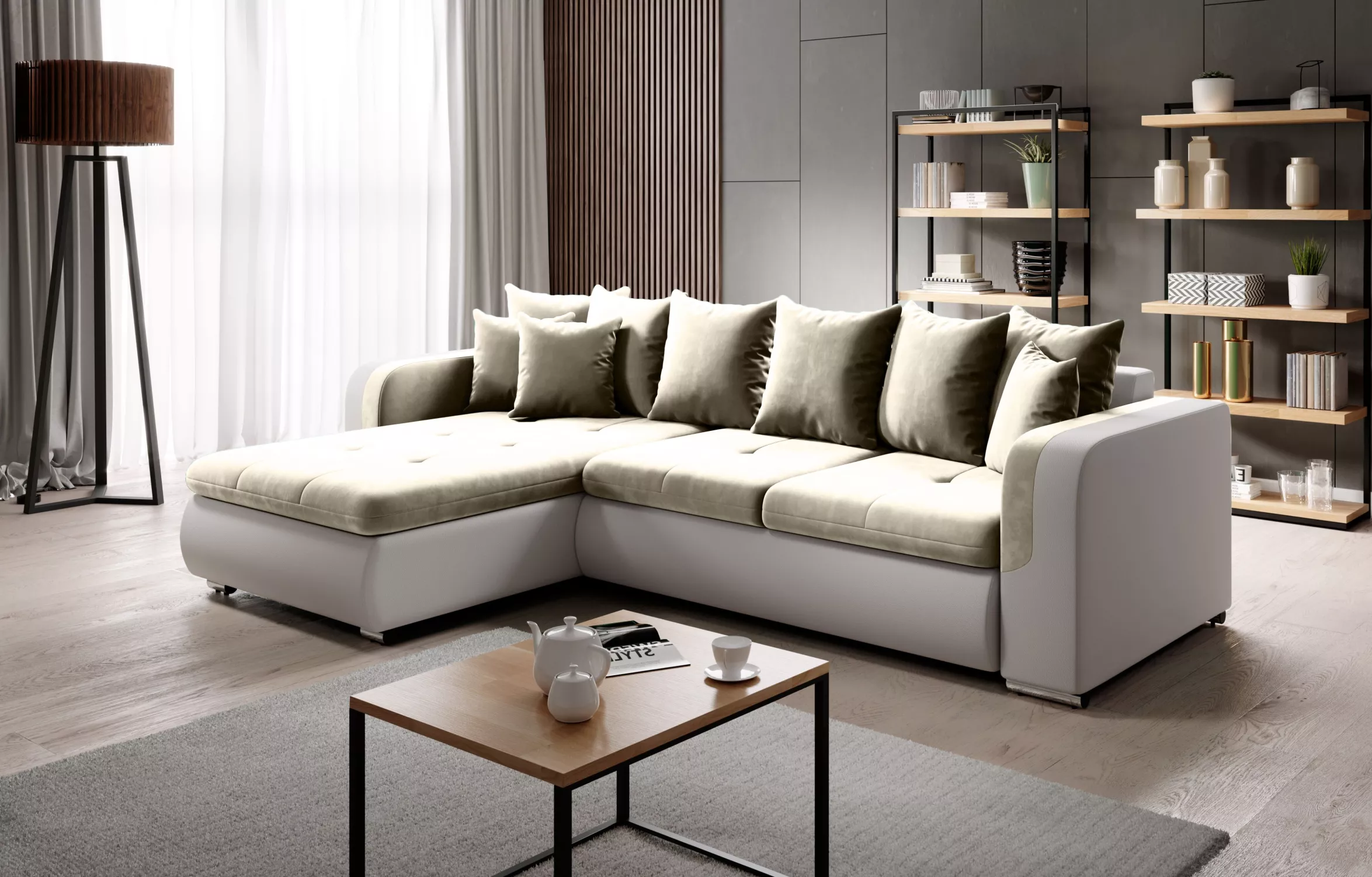 Rohová sedací souprava DAFNI MINI - bílá / béžová, levý roh