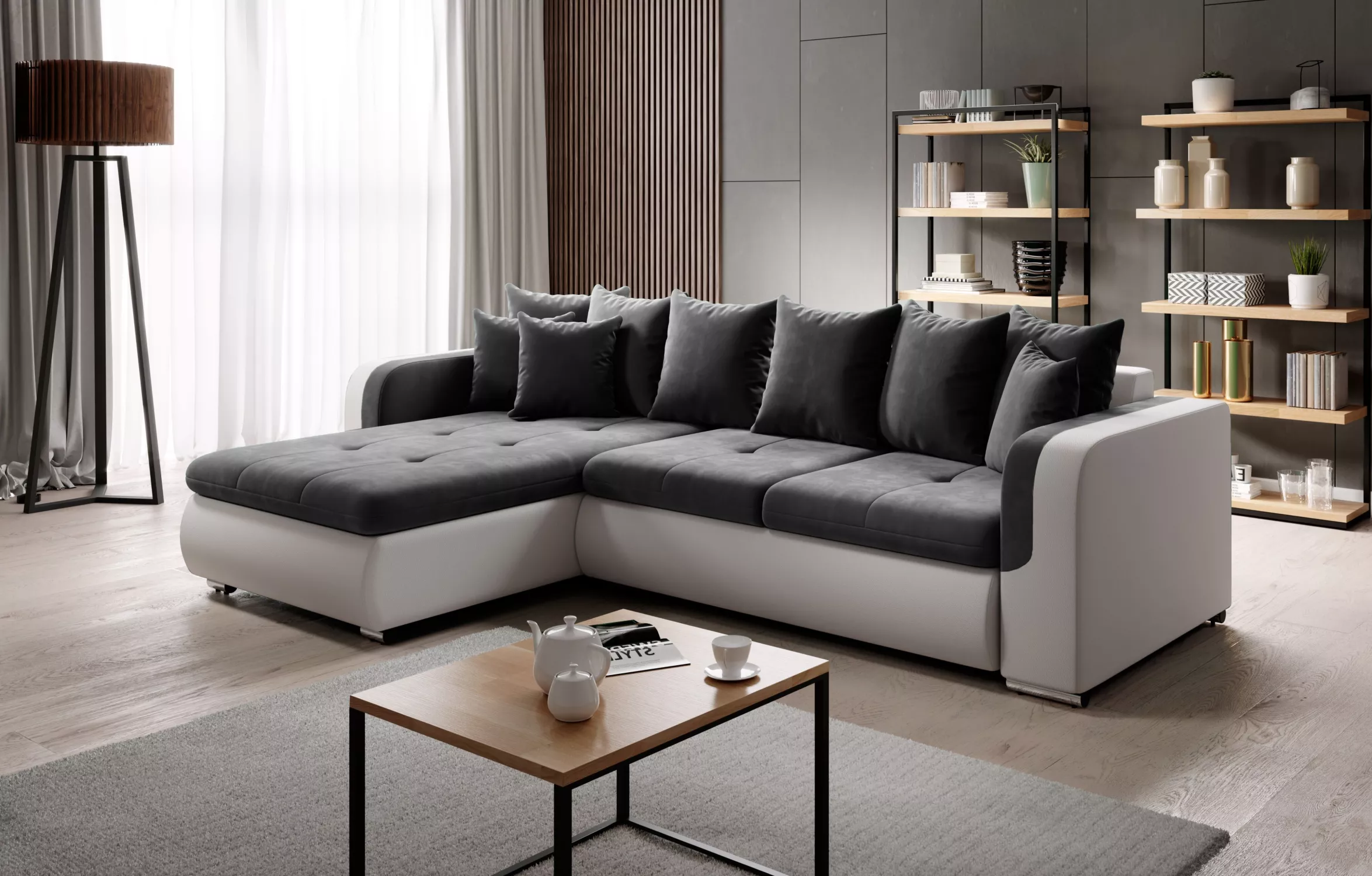Rohová sedací souprava DAFNI MINI - bílá / tmavě šedá, levý roh