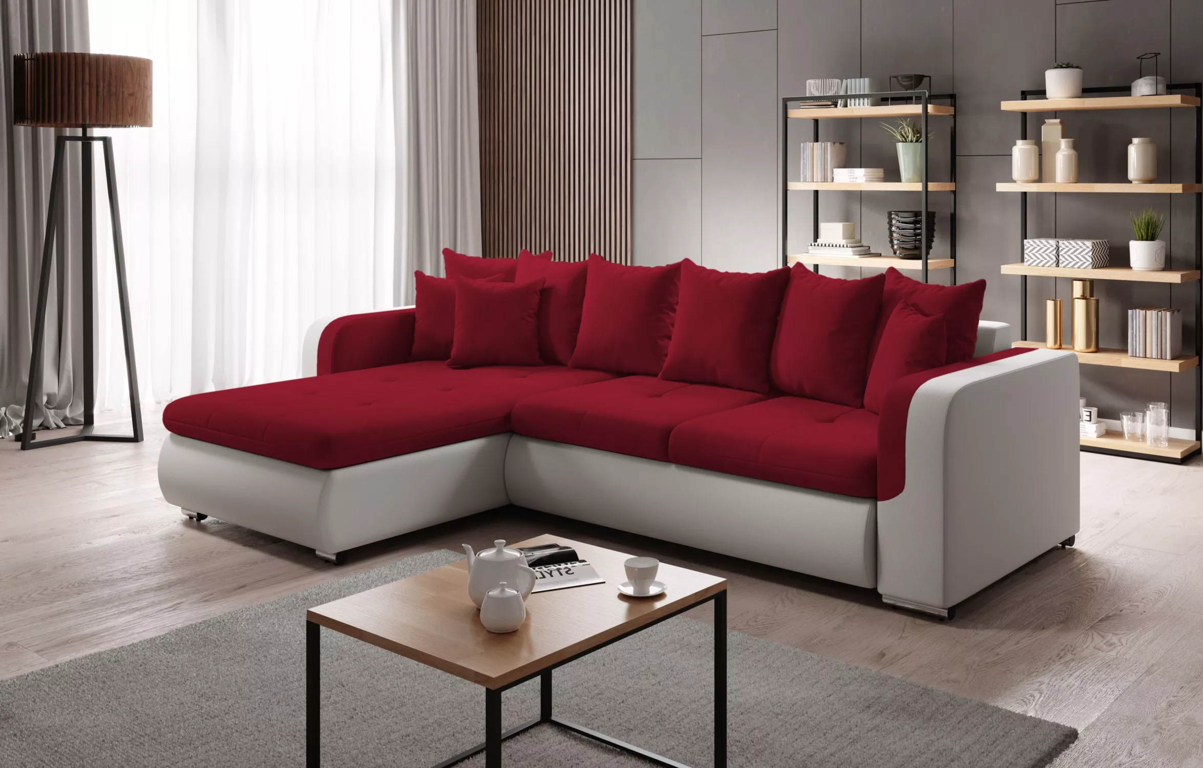 Rohová sedací souprava DAFNI MINI - bílá / červená, levý roh