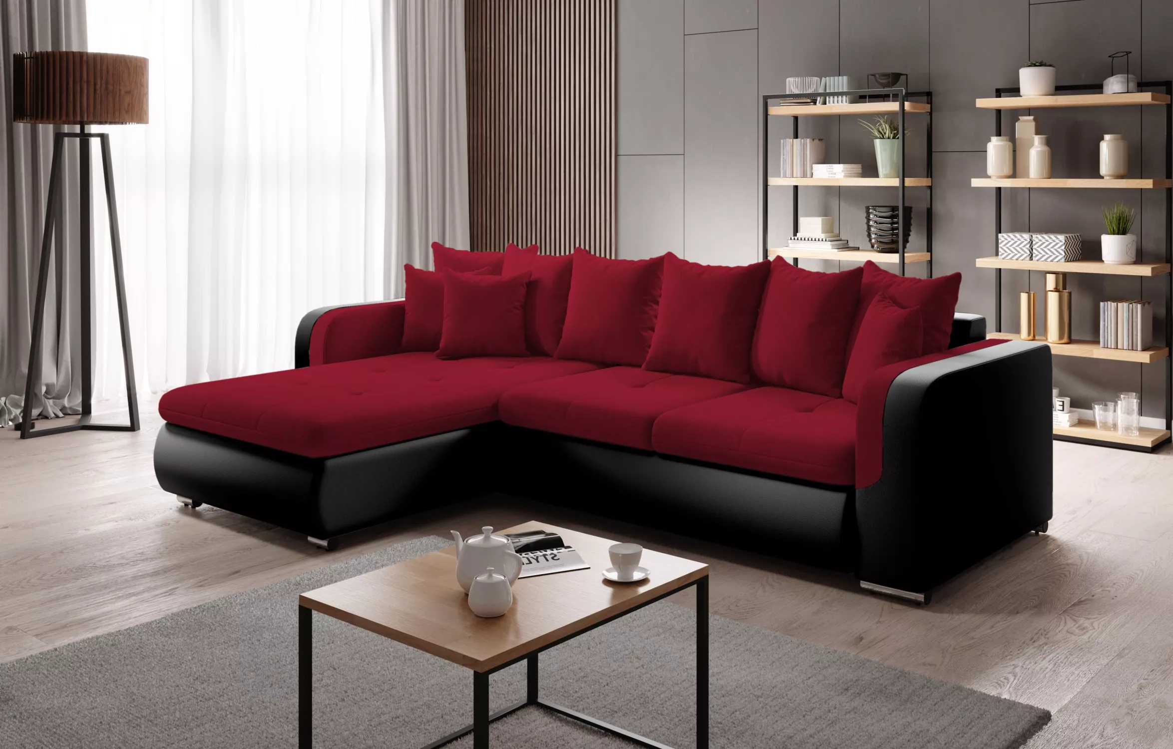 Rohová sedací souprava DAFNI MINI - černá / červená, levý roh