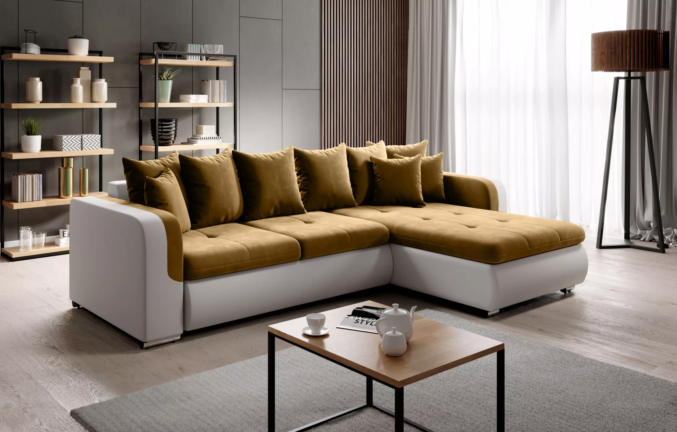 Rohová sedací souprava DAFNI MINI - bílá / hořčicová, pravý roh