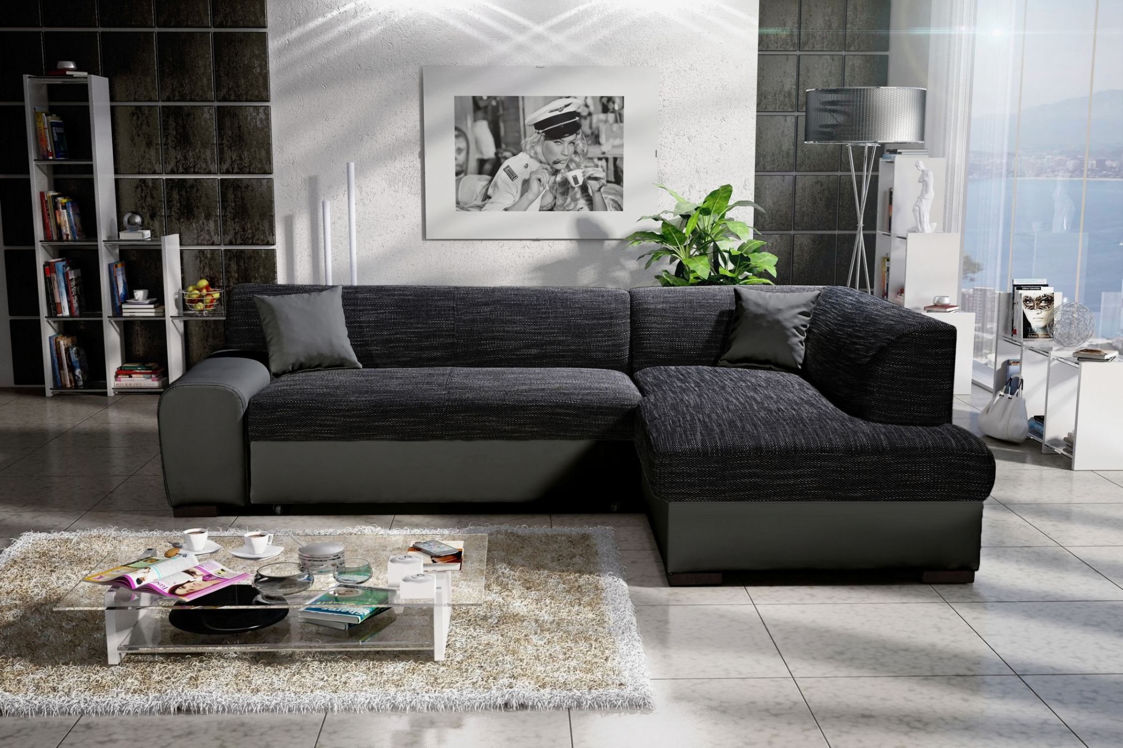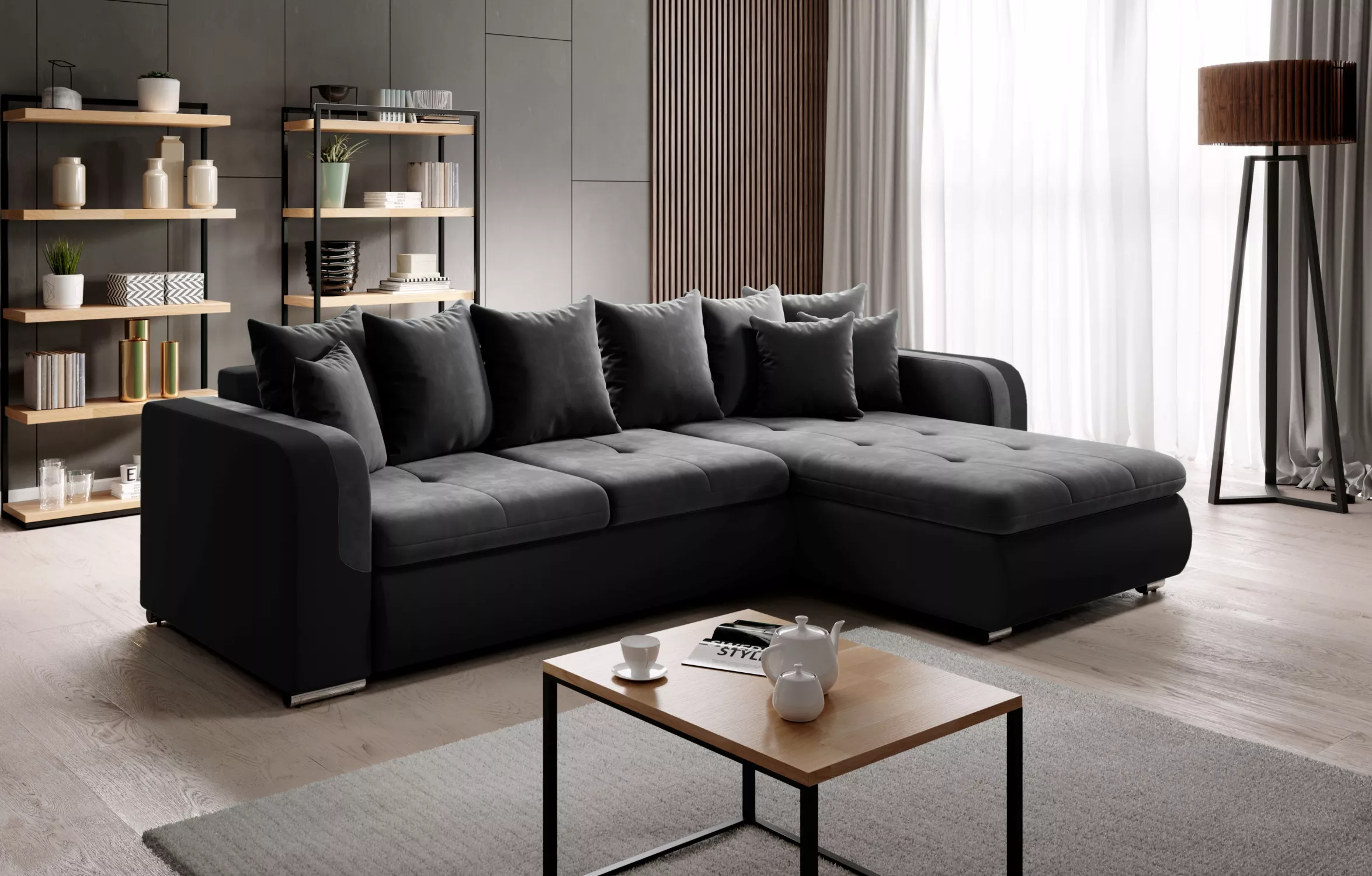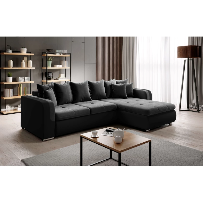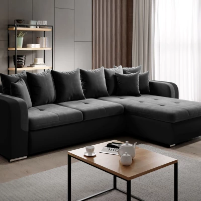 Rohová sedací souprava DAFNI MINI - černá / šedá, pravý roh