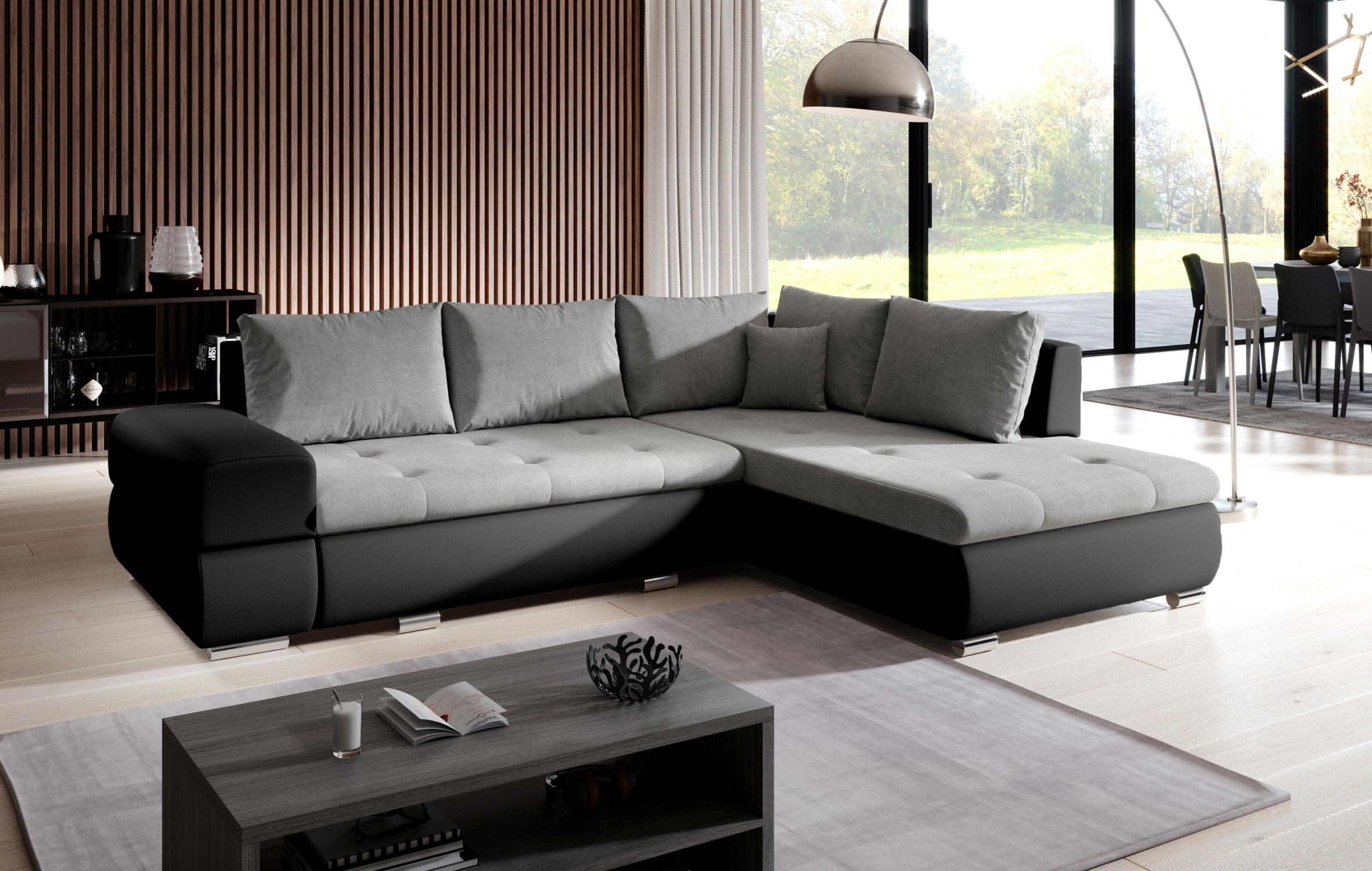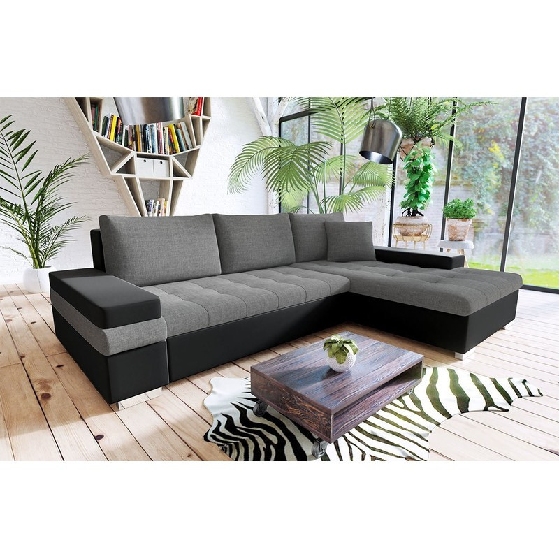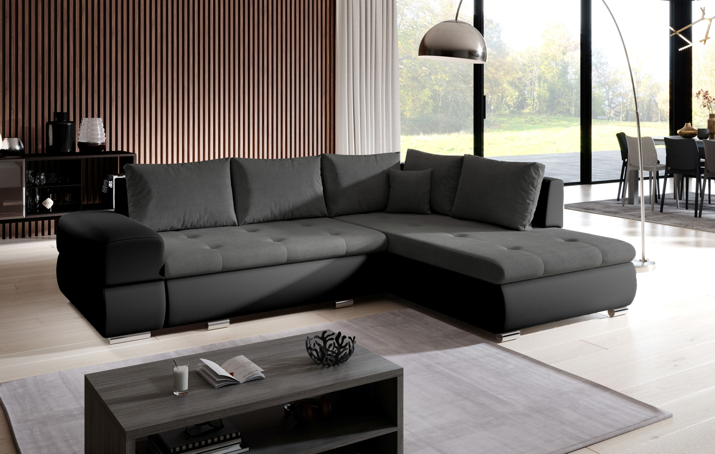 Rohová sedací souprava DAFNI MINI - černá / šedá, pravý roh