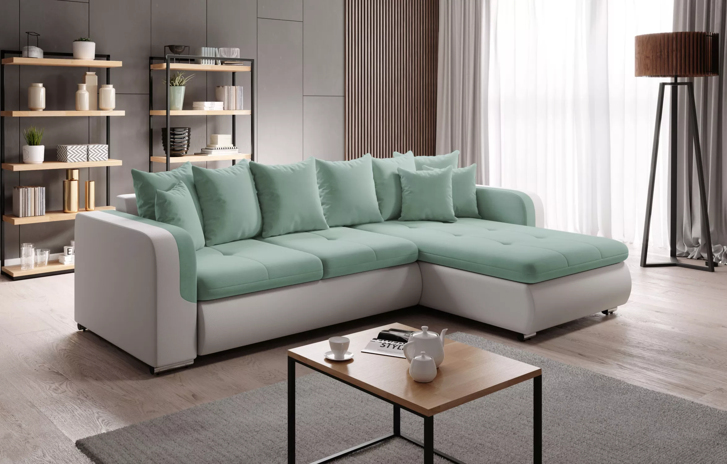 Rohová sedací souprava DAFNI MINI - bílá / mátová, pravý roh