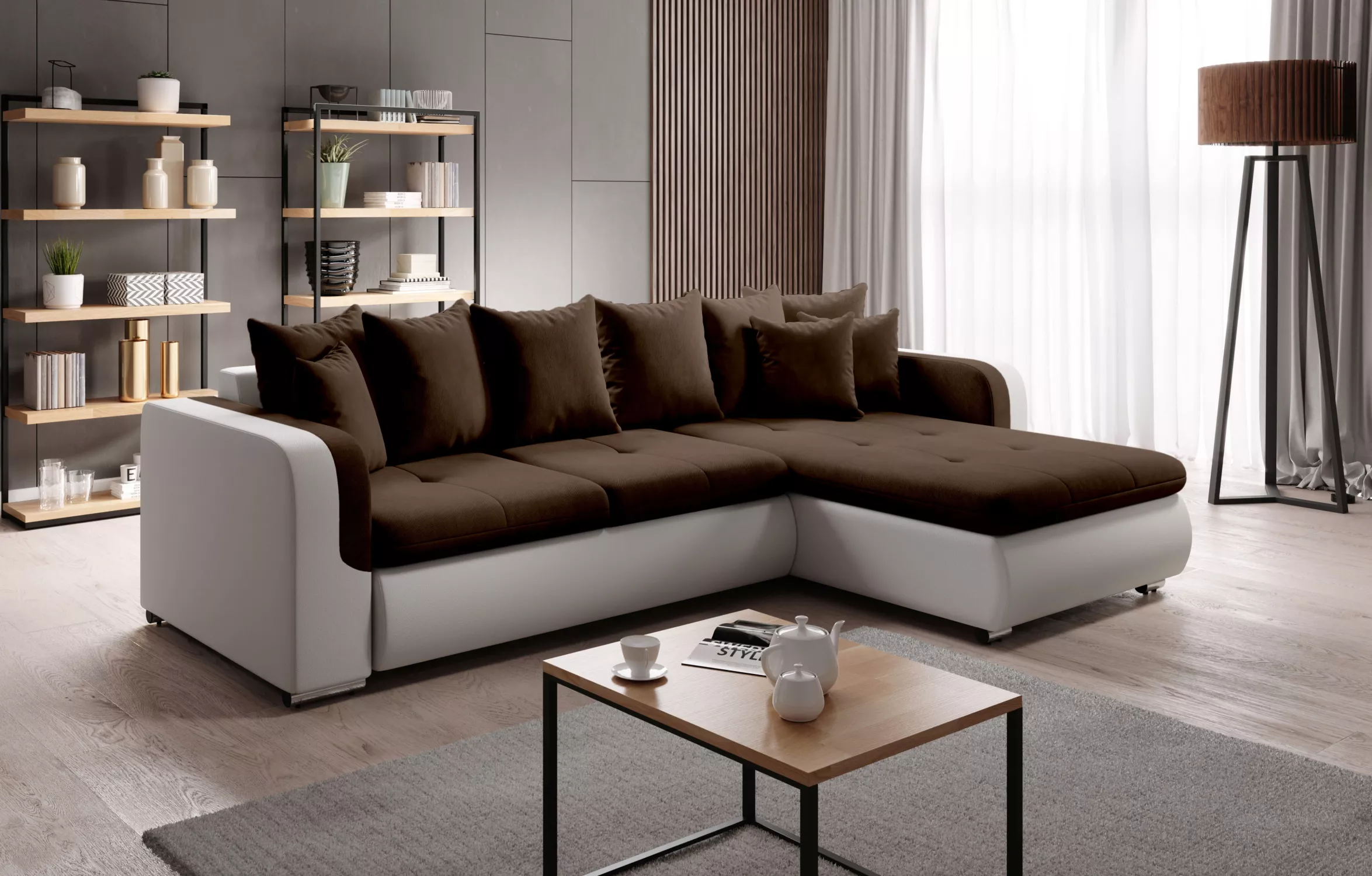 Rohová sedací souprava DAFNI MINI - bílá / tmavě hnědá, pravý roh