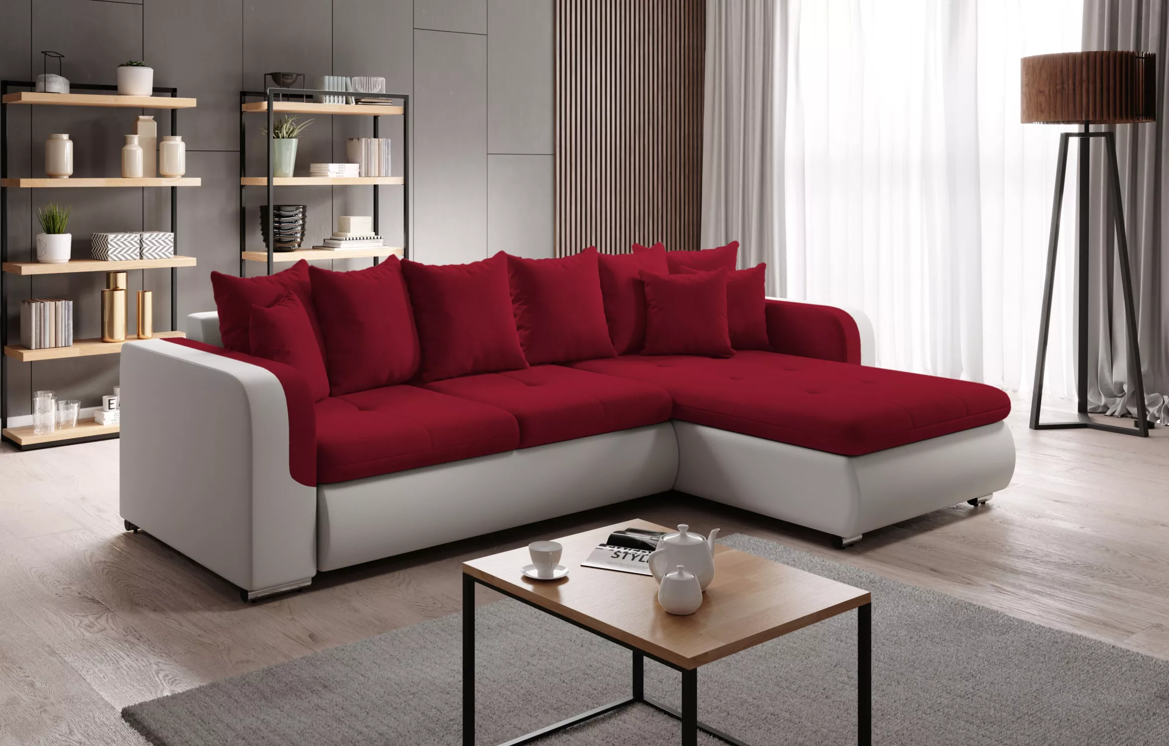 Rohová sedací souprava DAFNI MINI - bílá / červená, pravý roh