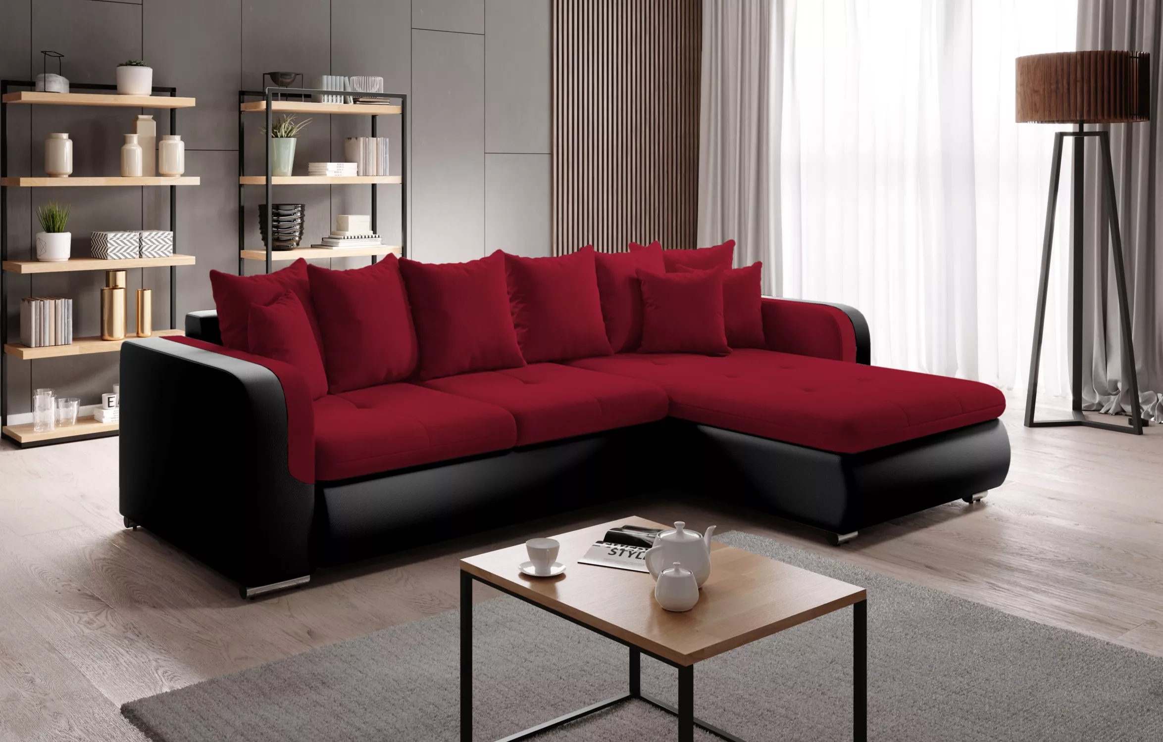Rohová sedací souprava DAFNI MINI - černá / červená, pravý roh