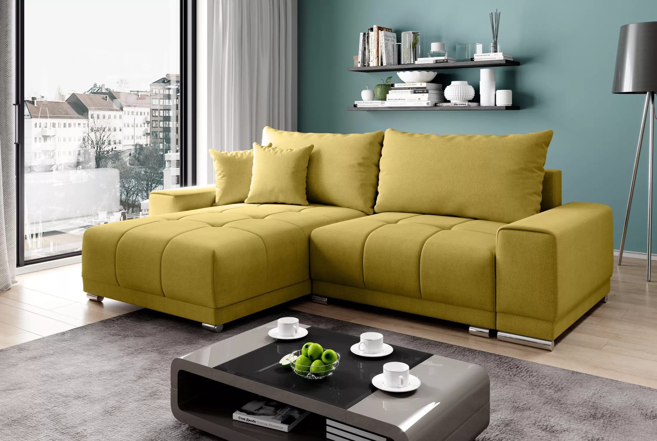 Sedací souprava s úložným prostorem VELIKA - hořčicová