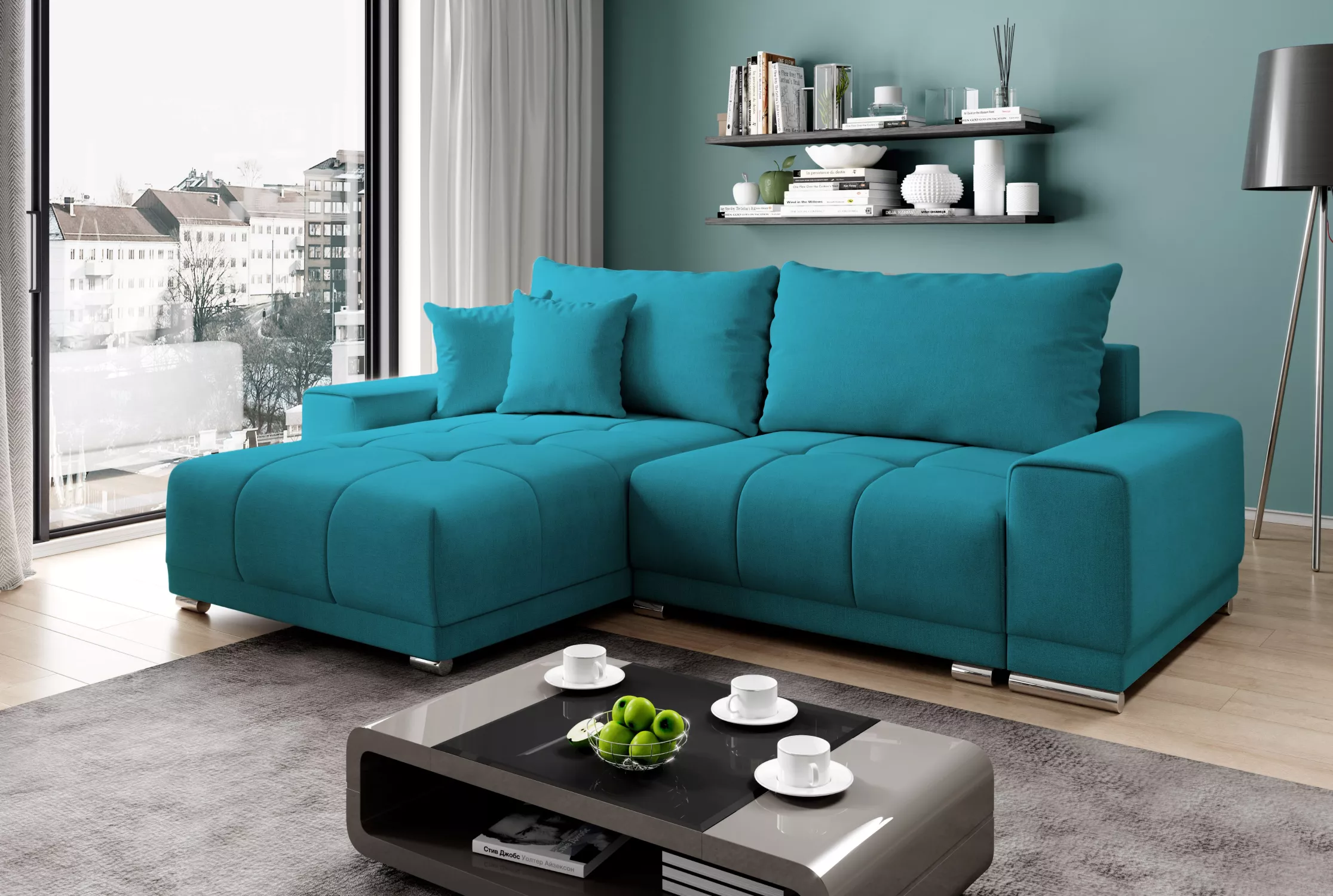 Sedací souprava s úložným prostorem VELIKA svým designem zapadne do všech moderních obývacích pokojů. Opěradlo ve formě volně ložených polštářů vám zpříjemní každodenní používání. Zadní část sedačky je čalouněná látkou, což umožňuje její umístění kdekoliv v místnosti.