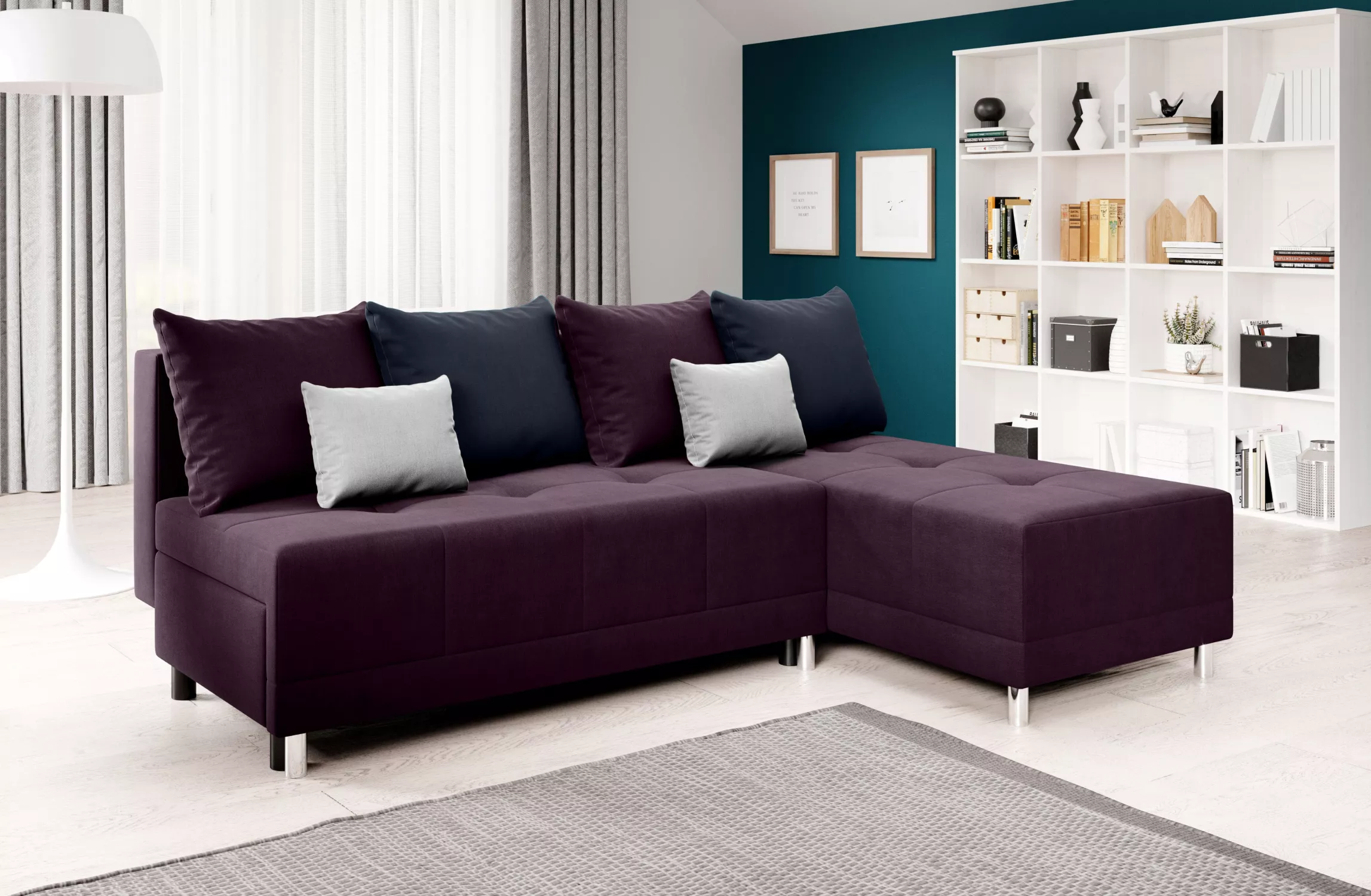 Rohová rozkládací sedačka LAVINIA - fialová / tmavě modrá / šedá