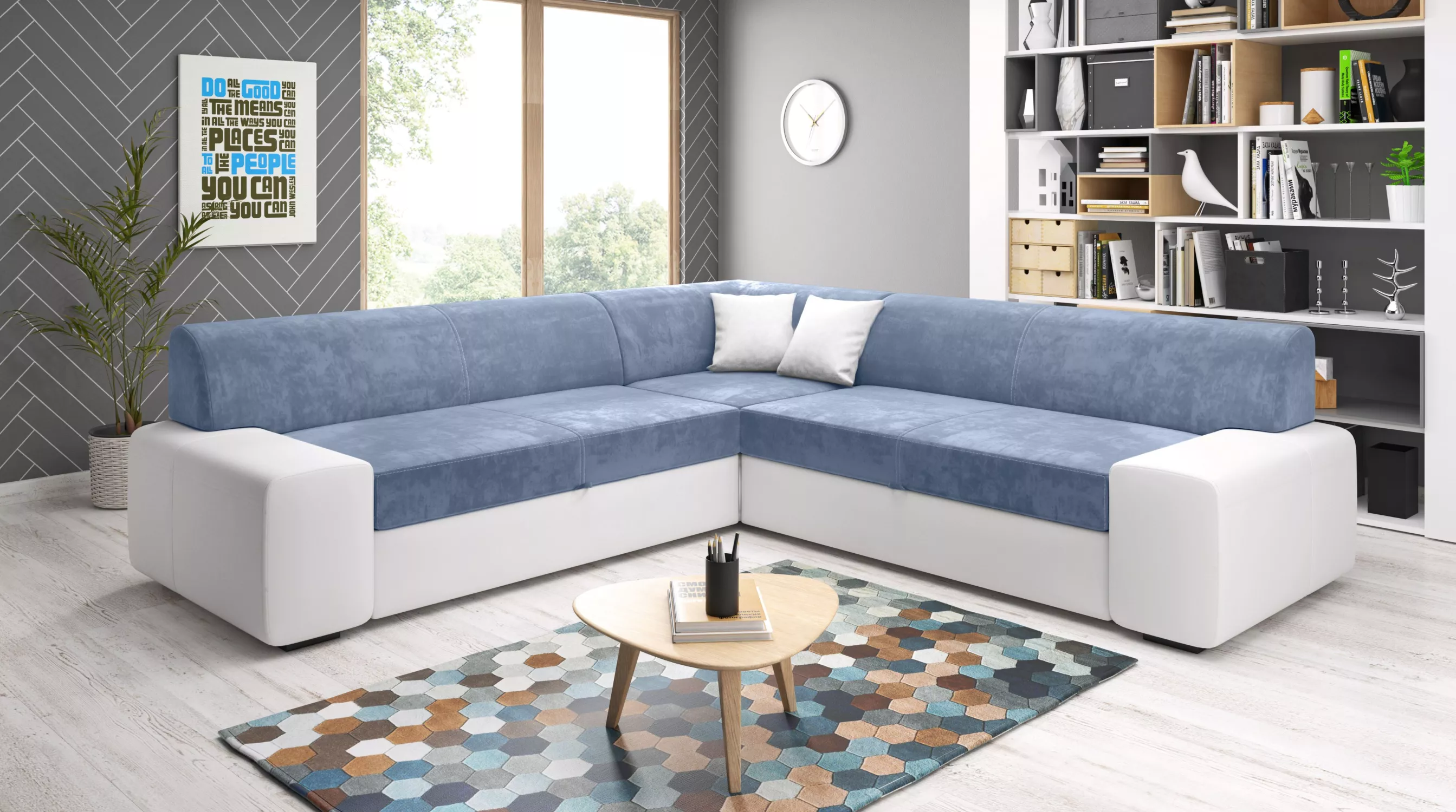 Rozkládací sedací souprava VALTRUDA MAXI - bílá / světle modrá