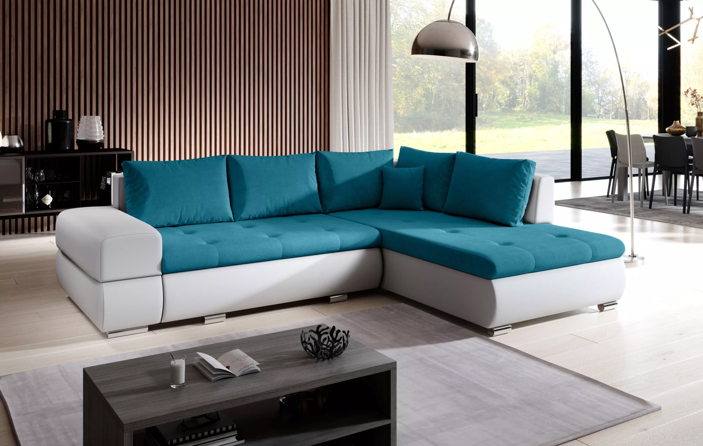 Rozkládací sedací souprava KLAVDIA - bílá / modrá