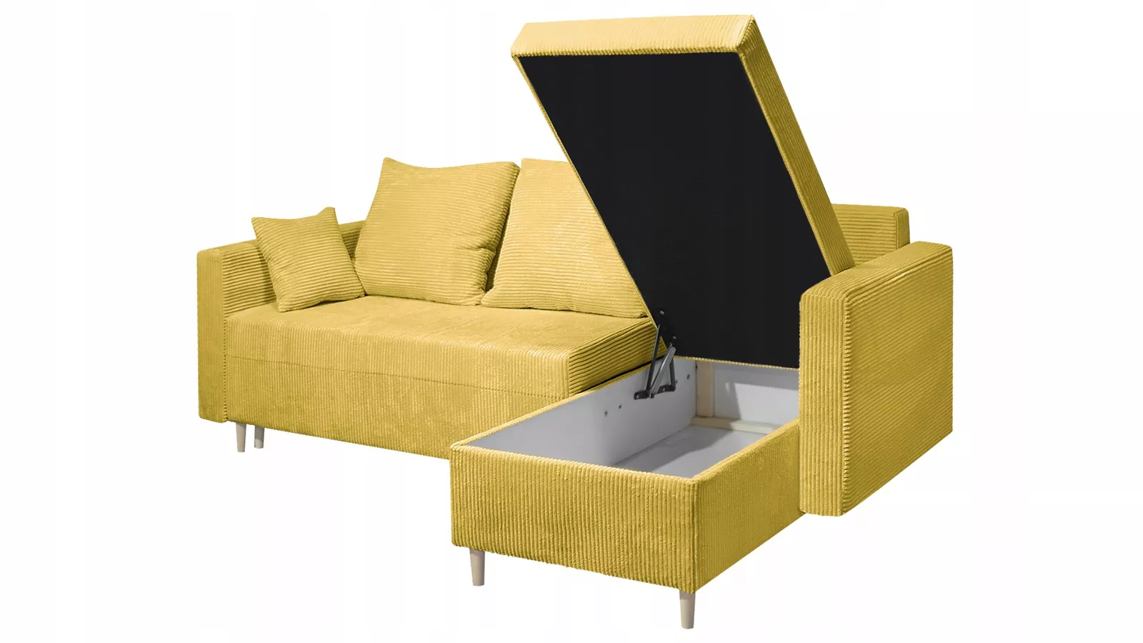 Rohová sedací souprava IDORA se hodí do každého moderního interiéru díky proužkovanému čalounění a čistým liniím. Samozřejmostí je rozkládací funkce pro příležitostné spaní a praktický úložný prostor.