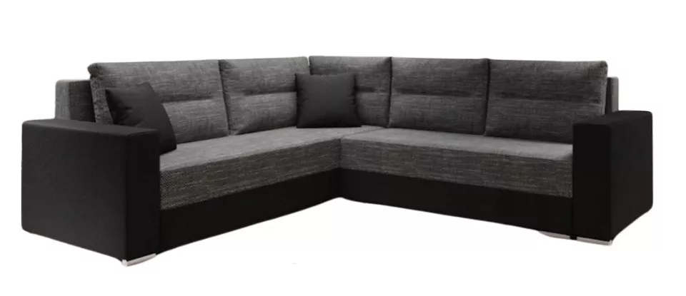 Rohová rozkládací sedací souprava HEMILY 2 - černá ekokůže / šedá