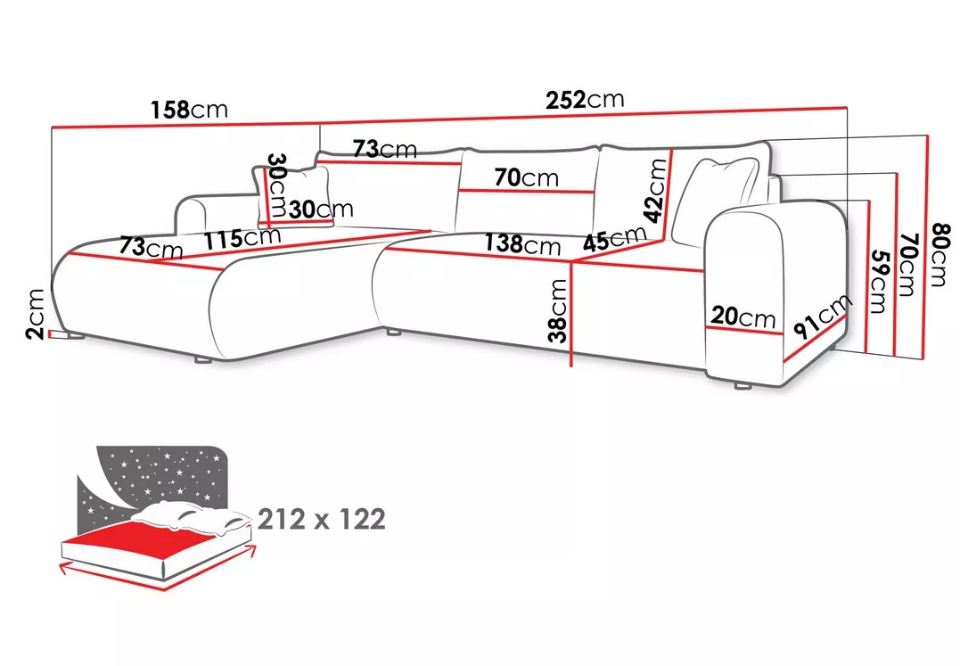 - celočalouněná: ano (potažená stejnou látkou i na zadní straně)
