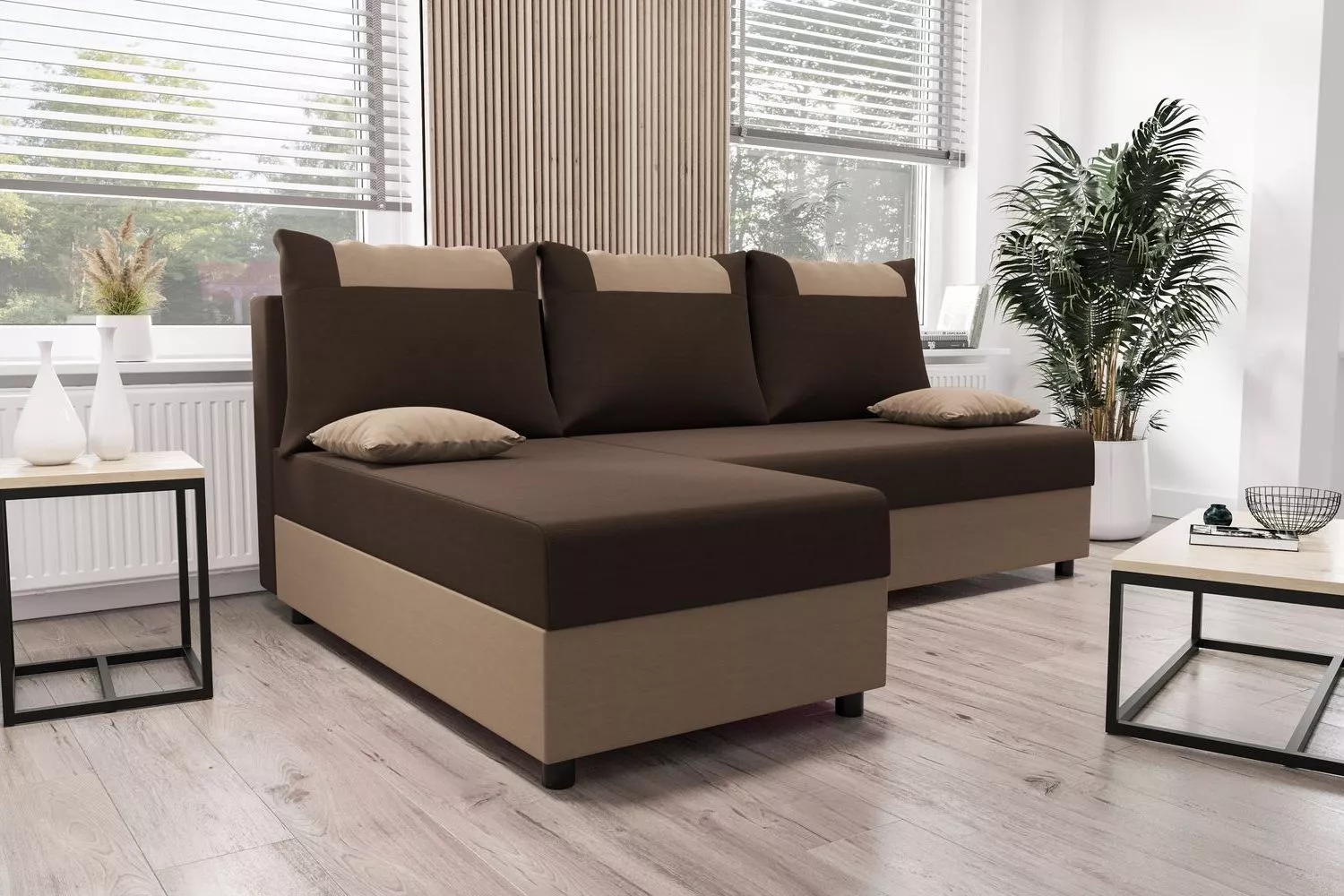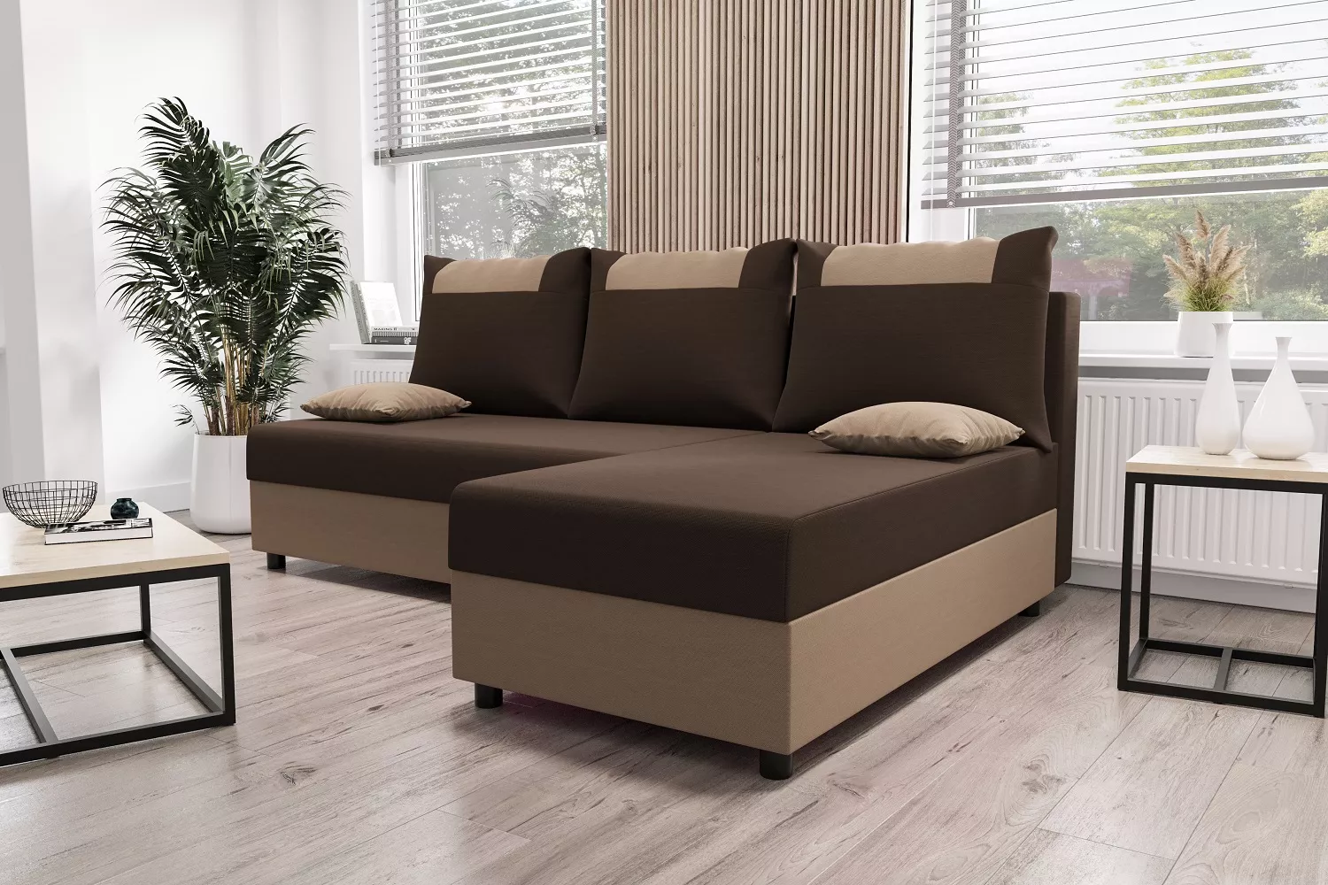 VÝPRODEJ - Rohová sedací souprava SANVI - hnědá / tmavě hnědá